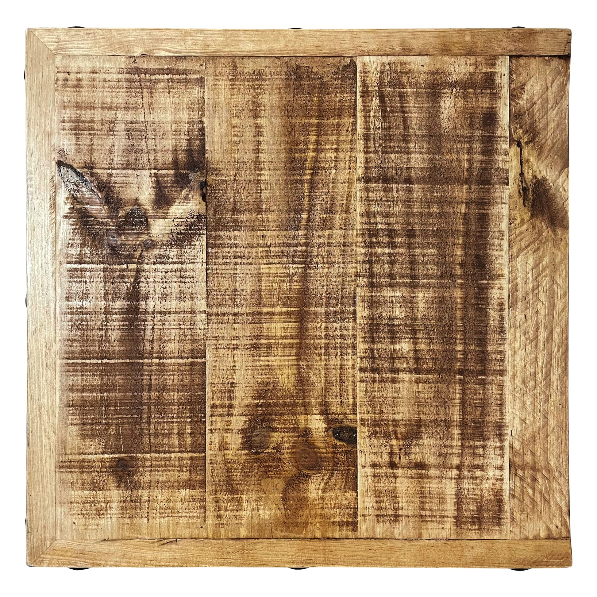 The Oasis Small Rustic Dog Kennel features decorative conchos around the top and bottom trim, adding a touch of southwestern charm. Its dual-purpose design allows it to serve as an end table or nightstand, making it a practical addition to any room.