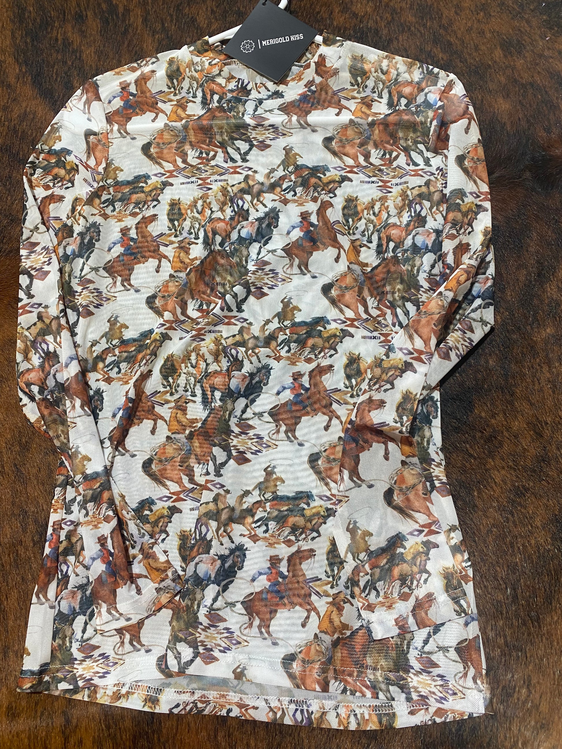 Go boldly in our Premium Mesh Tops! With its Western-inspired design and breathable mesh fabric, you'll stay cool and comfortable while taking on any adventure!