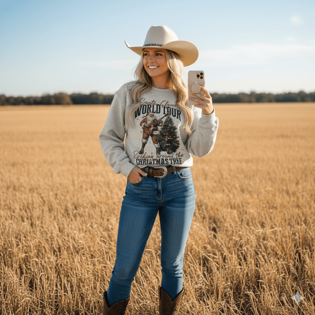 Get in the holiday groove with this Santa Rocking Around the Christmas Tree Graphic Sweatshirt. Featuring a fun, musical Santa design on soft, breathable fabric, this sweatshirt brings cheerful vibes to every celebration. Perfect for Christmas parties, gift shopping, or just rocking around the tree in comfort and style!