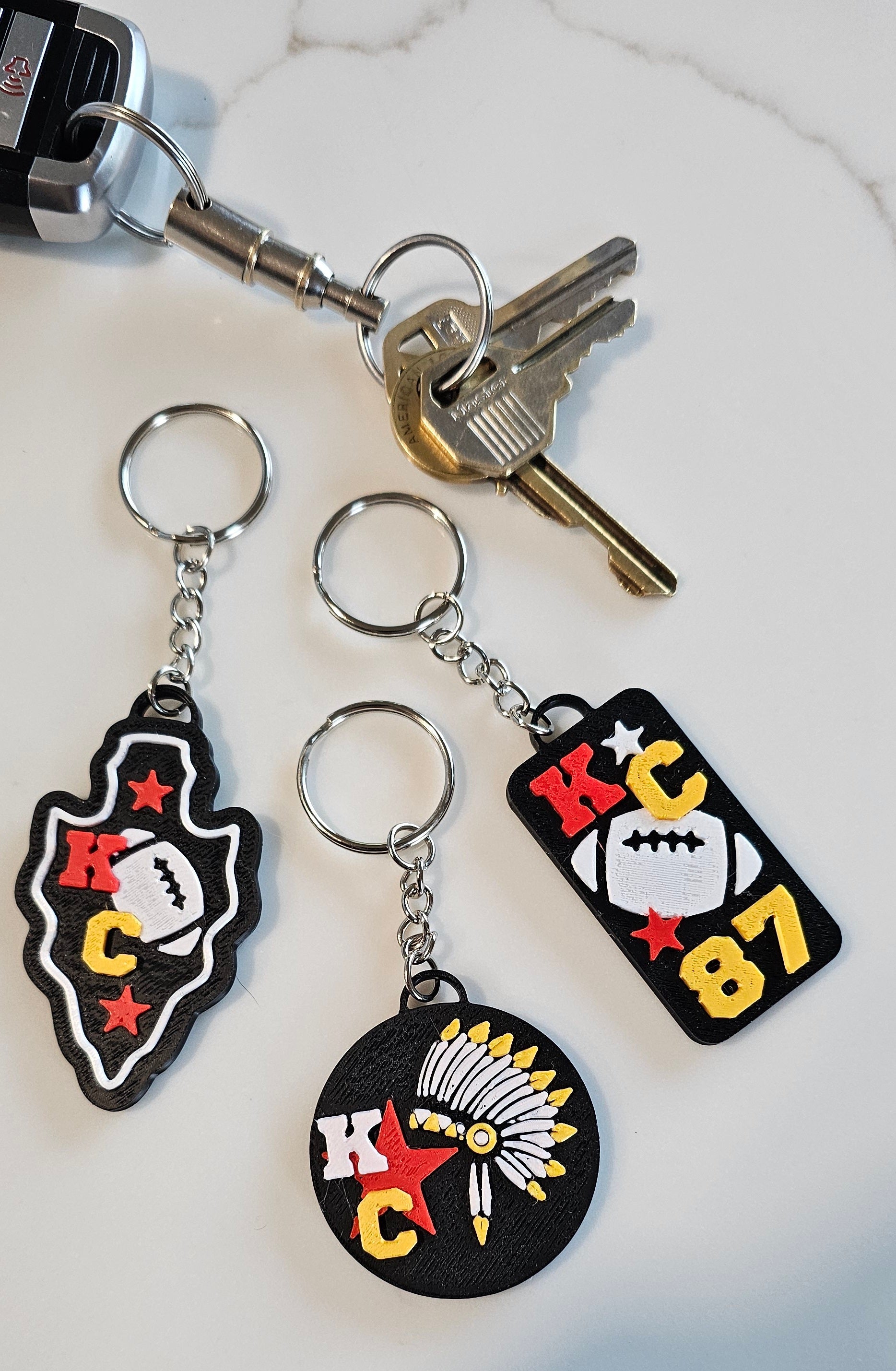 Set of 3 3D Print Chiefs Arrowhead Kc Kansas City 87 Football Keychains Made in America
