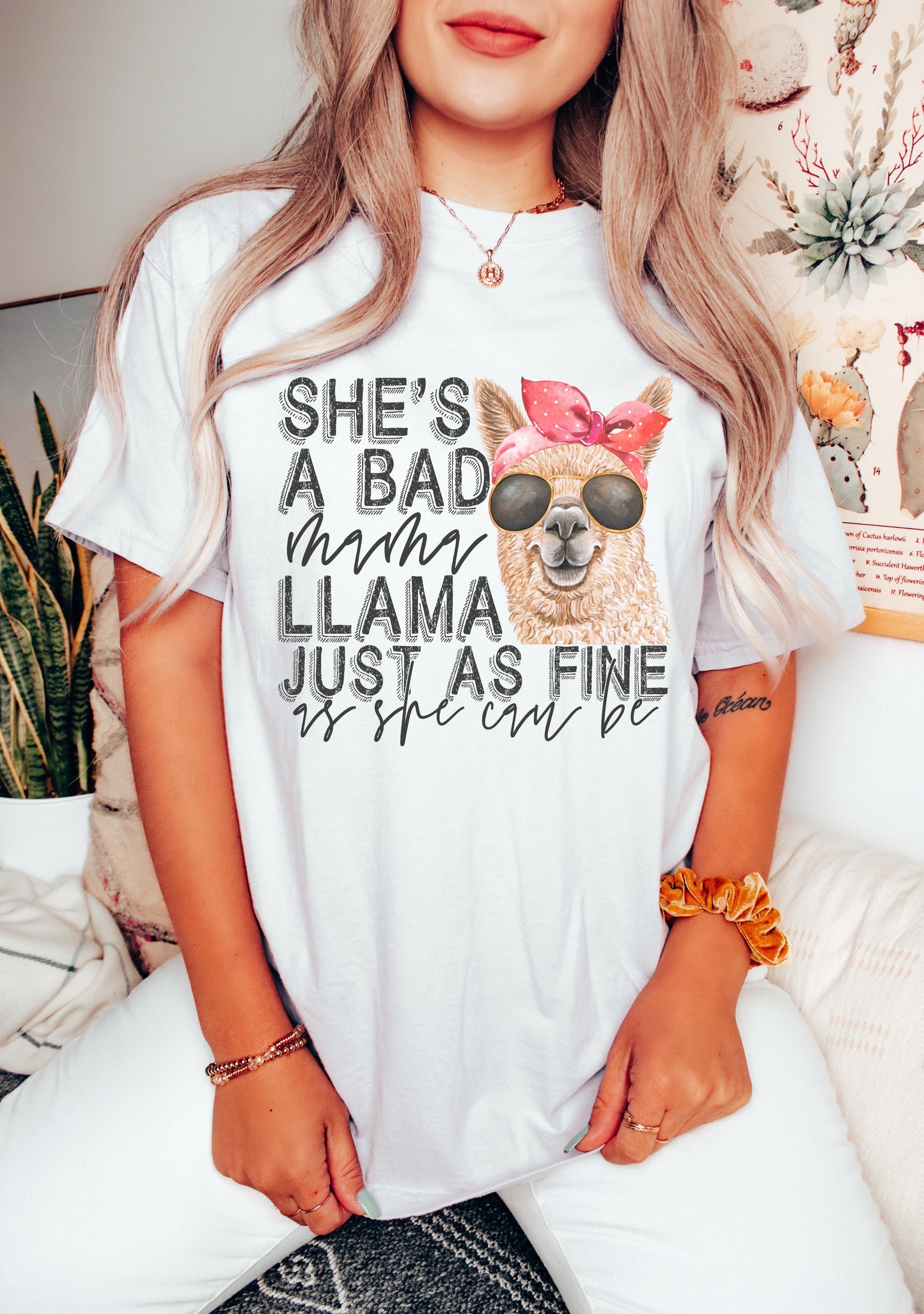 She's a Bad Mama Llama - Woman's - Direct To Film Transfer / DTF - Heat Press Clothing Transfer