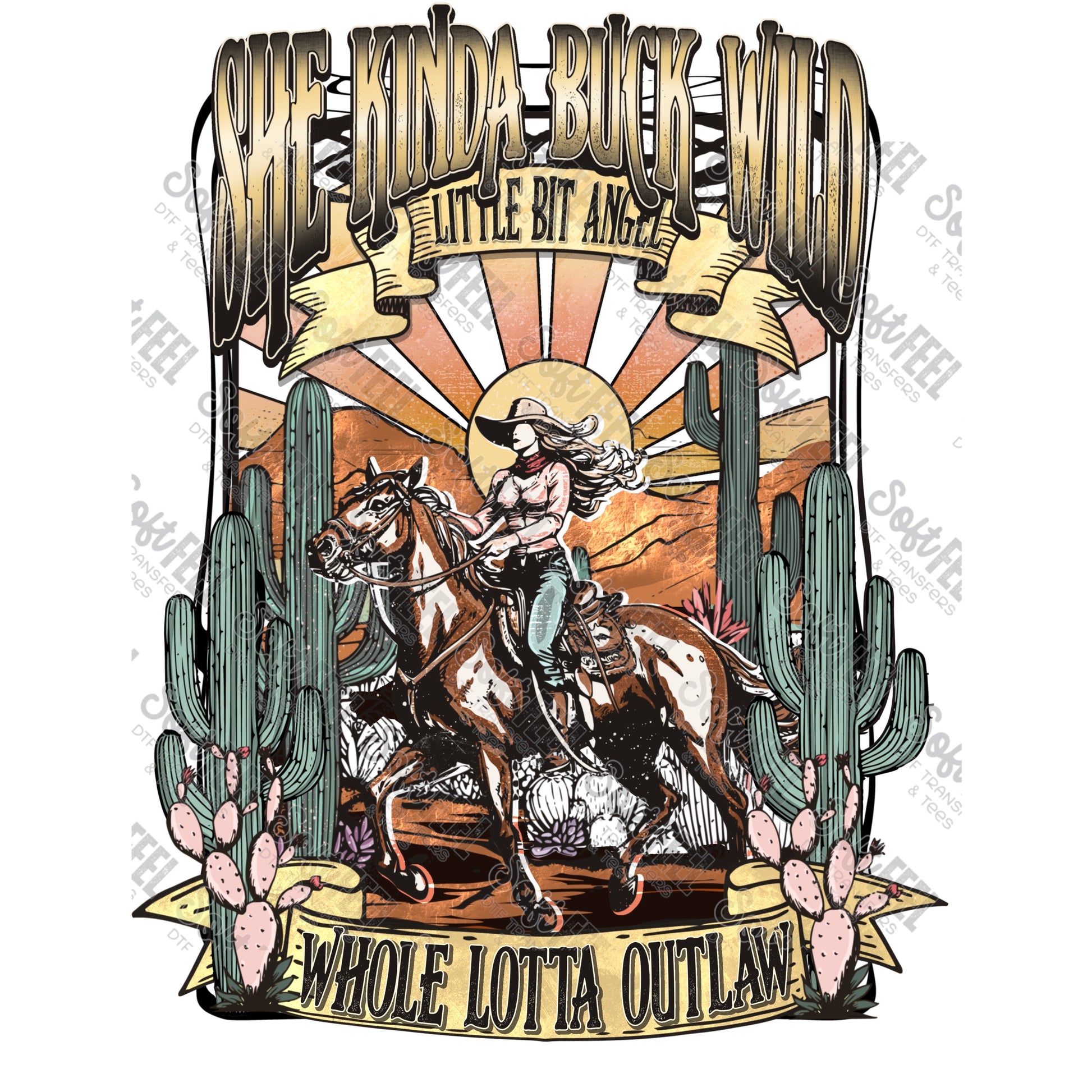 She's Kinda Buck Wild Outlaw - Women's / Western - Direct To Film Transfer / DTF - Heat Press Clothing Transfer