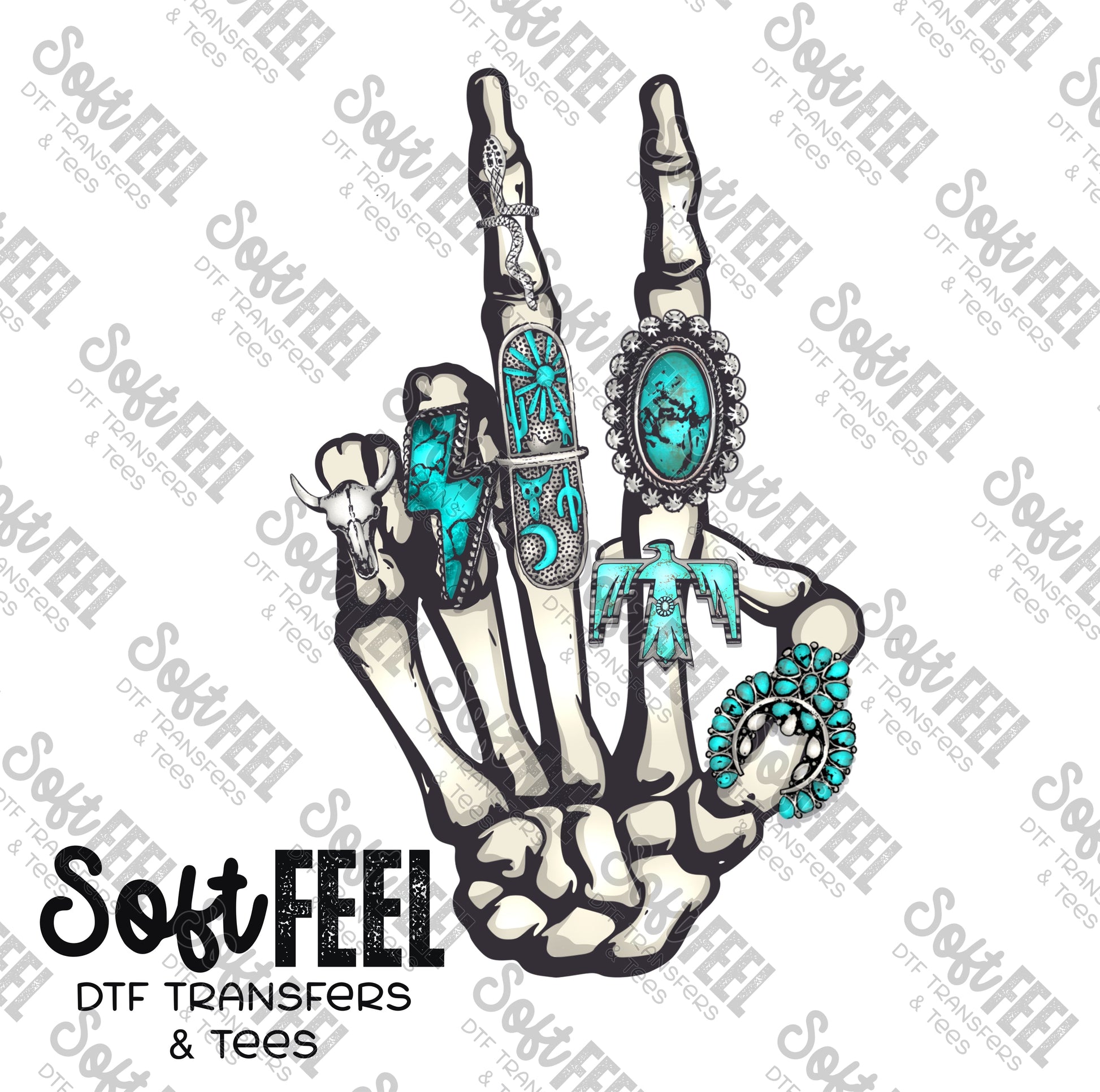 Skeleton Hand Turquoise Rings - Western - Direct To Film Transfer / DTF - Heat Press Clothing Transfer