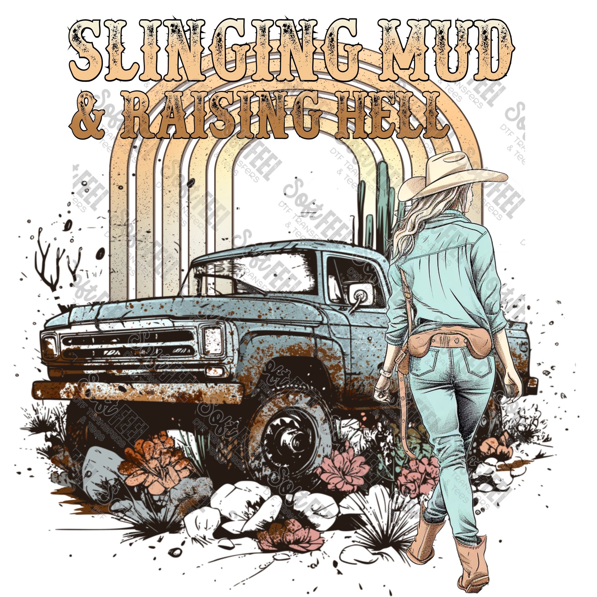 Slinging Mud and Raising Hell 4x4 - Country Western - Direct To Film Transfer / DTF - Heat Press Clothing Transfer