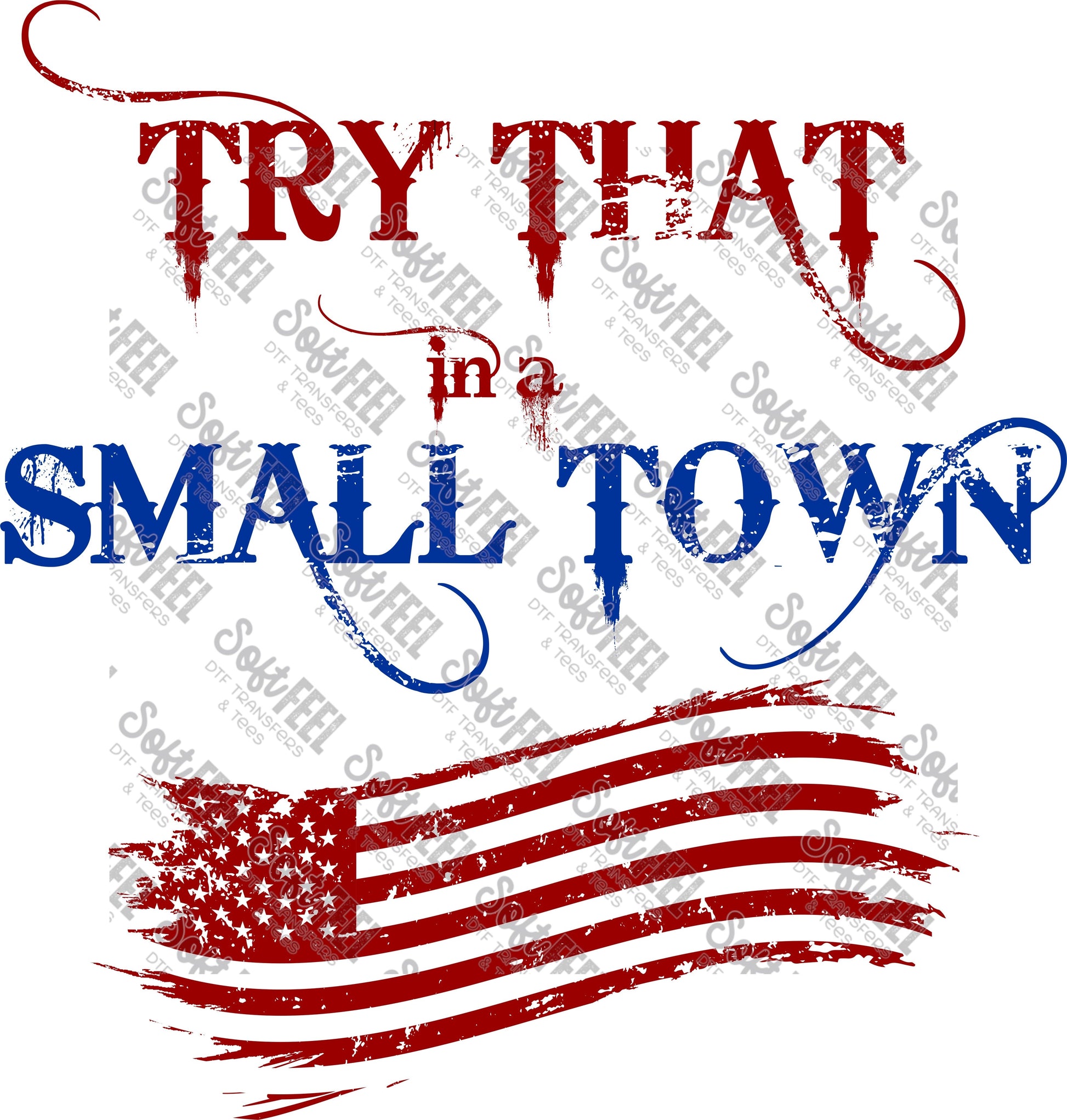 Small Town Red Blue - Country Western / Patriotic - Direct To Film Transfer / DTF - Heat Press Clothing Transfer