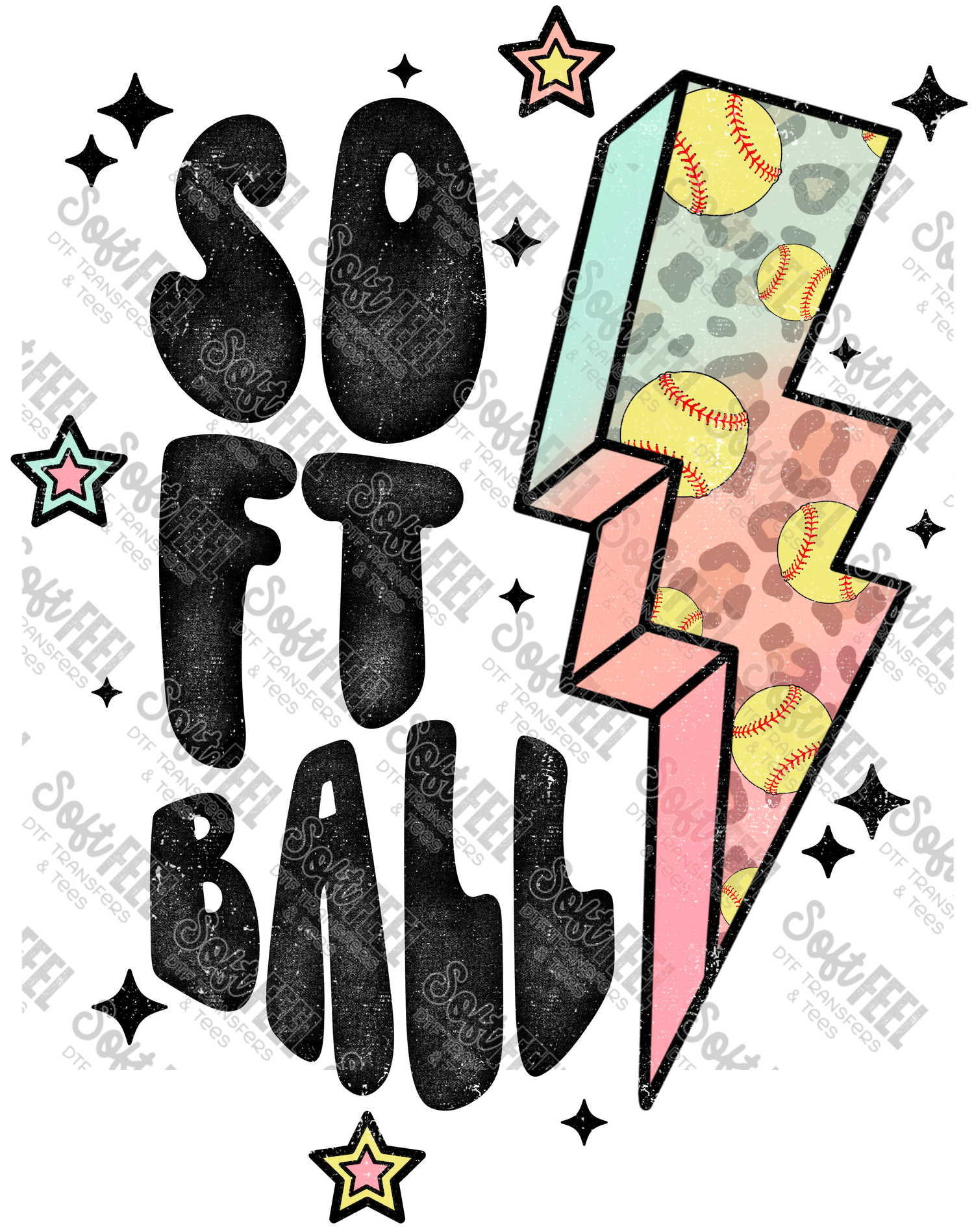 Softball Black Grunge Bolt - Sports - Direct To Film Transfer / DTF - Heat Press Clothing Transfer