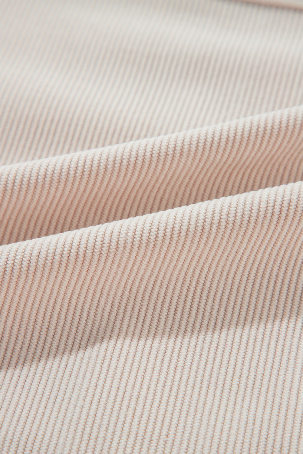 Solid Corduroy Zip-Up Pocketed Hooded Jacket
