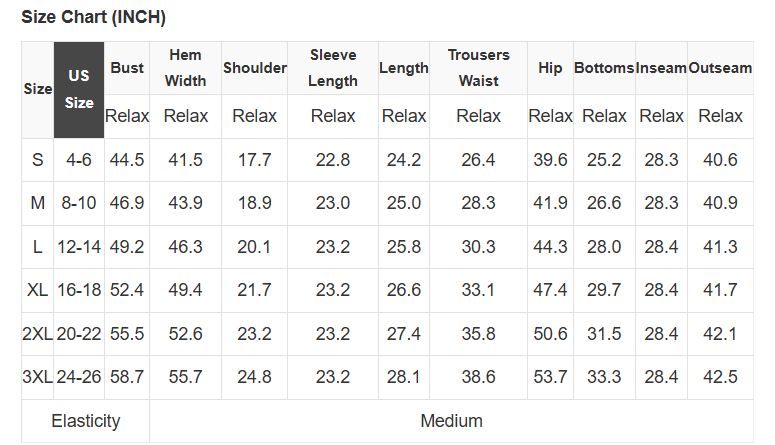 See size chart for approximate measurements.