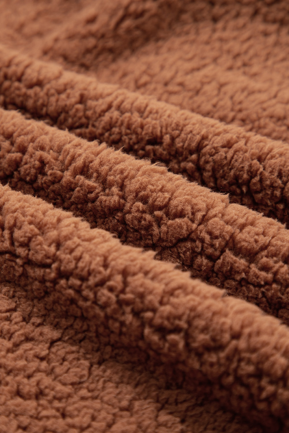 Solid Sherpa Fleece Zip Up Hooded Jacket