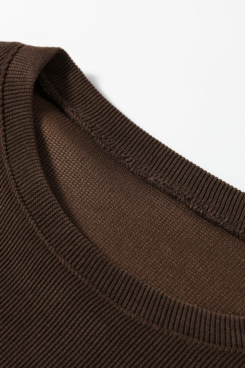 Effortless style meets cozy comfort with this dark brown two-piece set. The textured knit fabric feels as good as it looks—soft, breathable, and built to last. Oversized drop shoulders and a relaxed silhouette on the pullover give you that perfectly laid-back vibe, while the matching drawstring shorts complete the casual-cool ensemble. Perfect for lounging, running errands, or just vibing in style. Polyester/Spandex