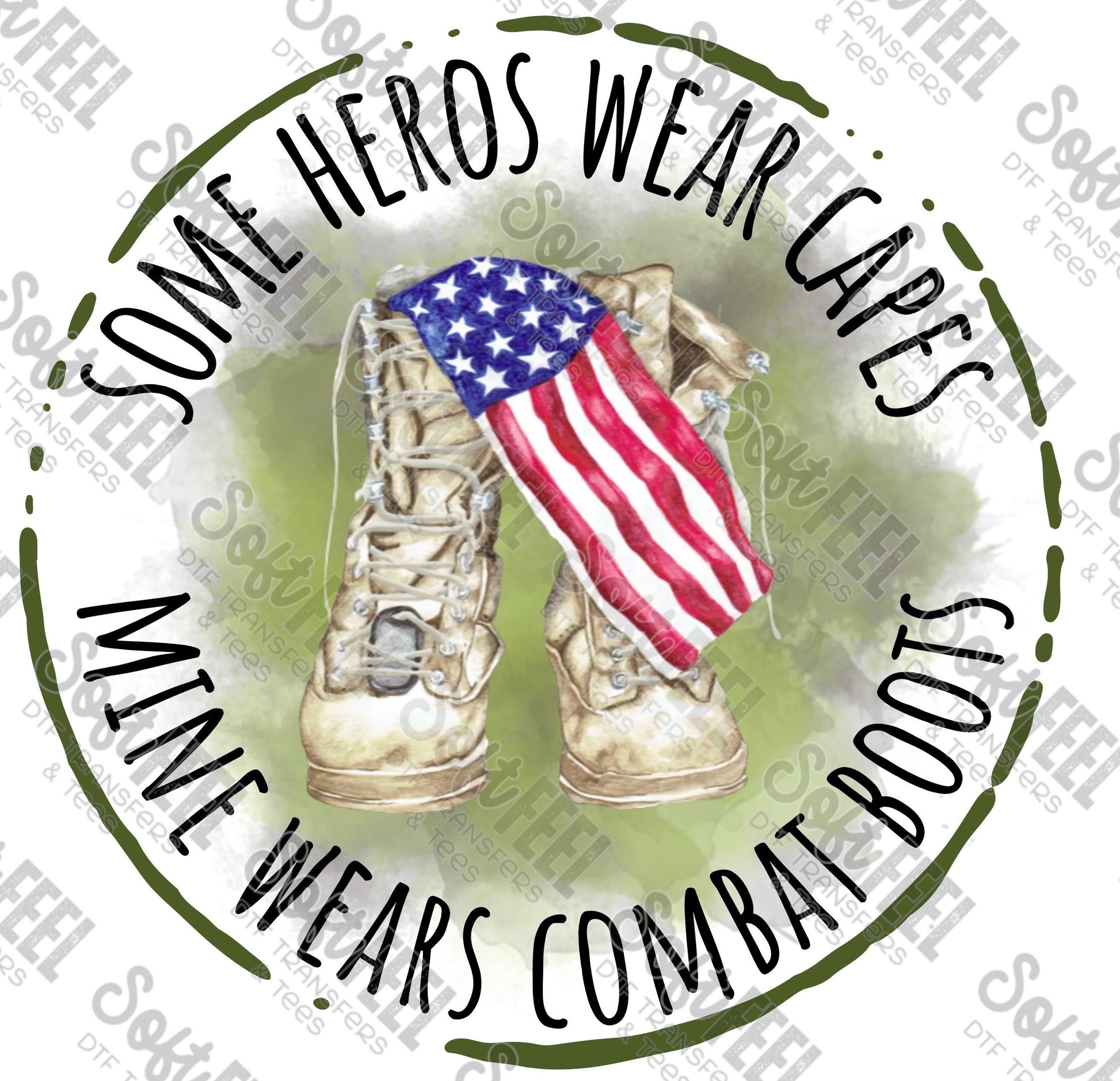 Some Hero's Wear Capes Mine Wears Combat Boots - Youth / Patriotic / Military - Direct To Film Transfer / DTF - Heat Press Clothing Transfer