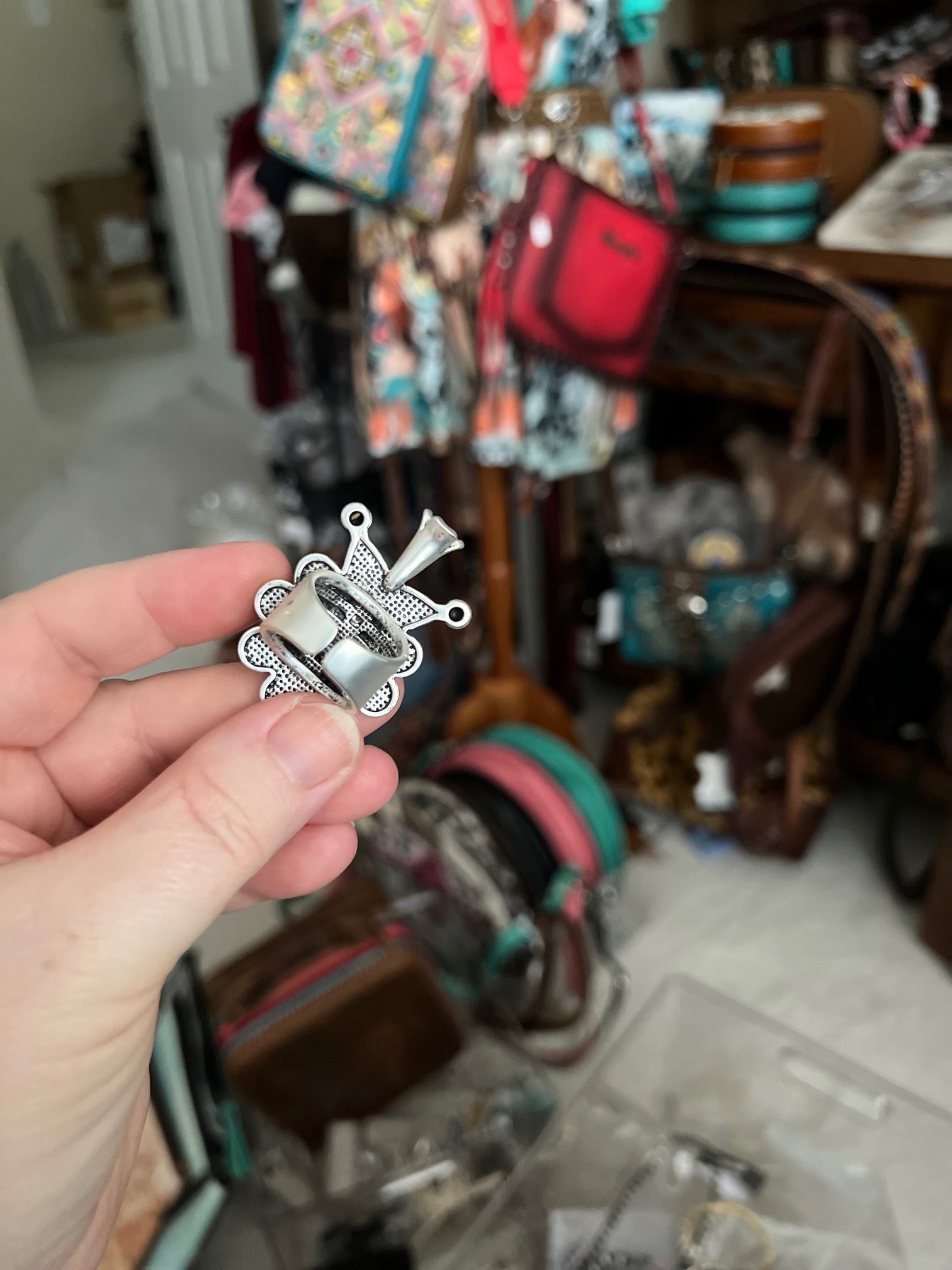 Add a touch of vibrant color to your outfit with our Spiny Squash Turquoise Ring. Handcrafted with intricate details, this ring features a beautiful turquoise stone that is known for its calming and protective properties. Feel empowered and confident as you wear this unique and eye-catching piece of jewelry.