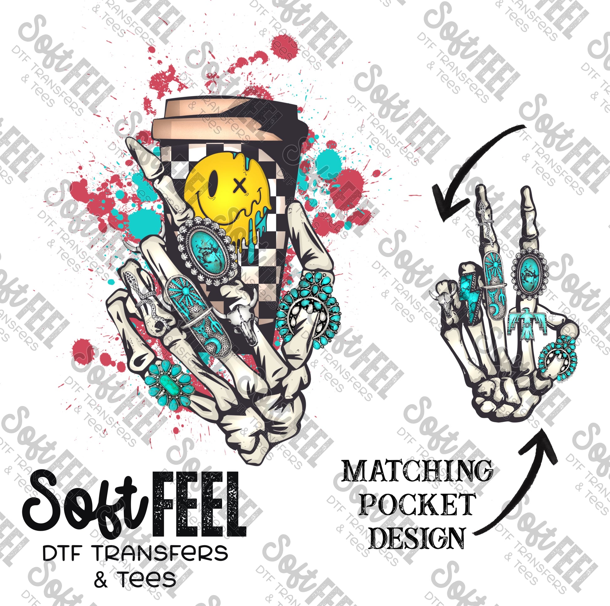 Spooky Skeleton Hand Turquoise Rings -Western / Halloween Horror - Direct To Film Transfer / DTF - Heat Press Clothing Transfer