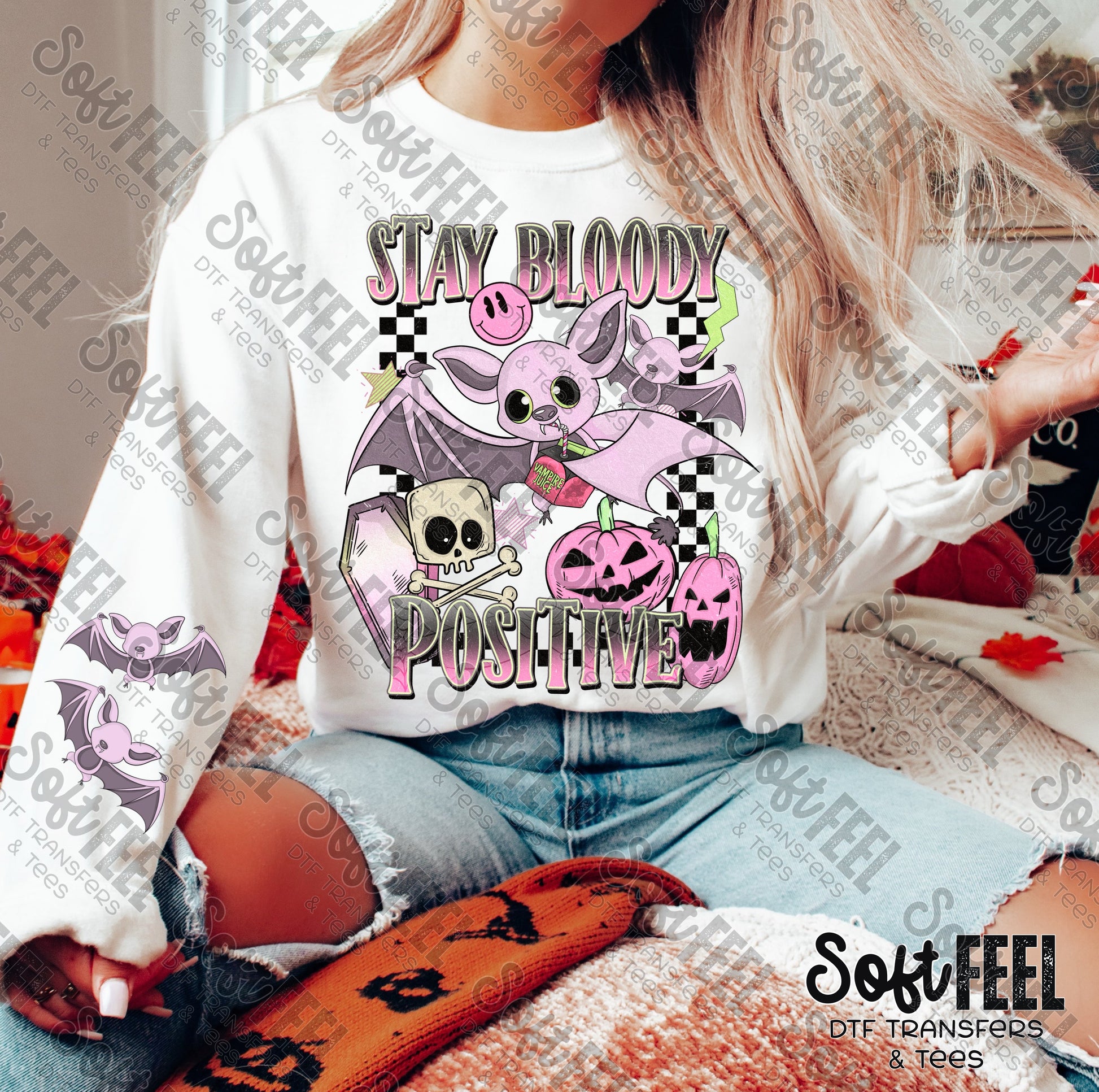 Stay Bloody Positive Bats with Sleeves - retro / Halloween Horror - Direct To Film Transfer / DTF - Heat Press Clothing Transfer