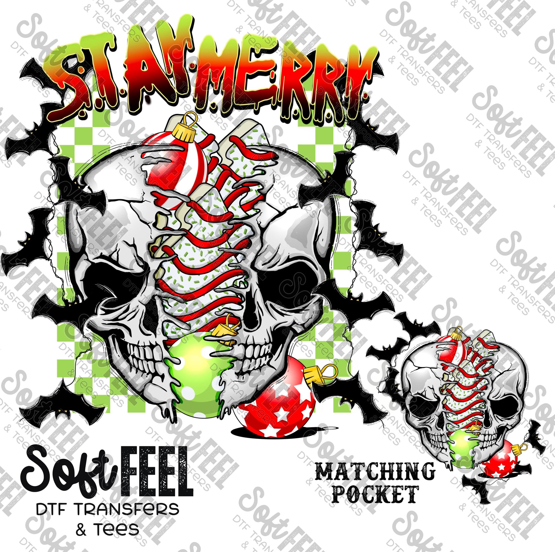 Stay Merry Christmas Skull - Christmas - Direct To Film Transfer / DTF - Heat Press Clothing Transfer