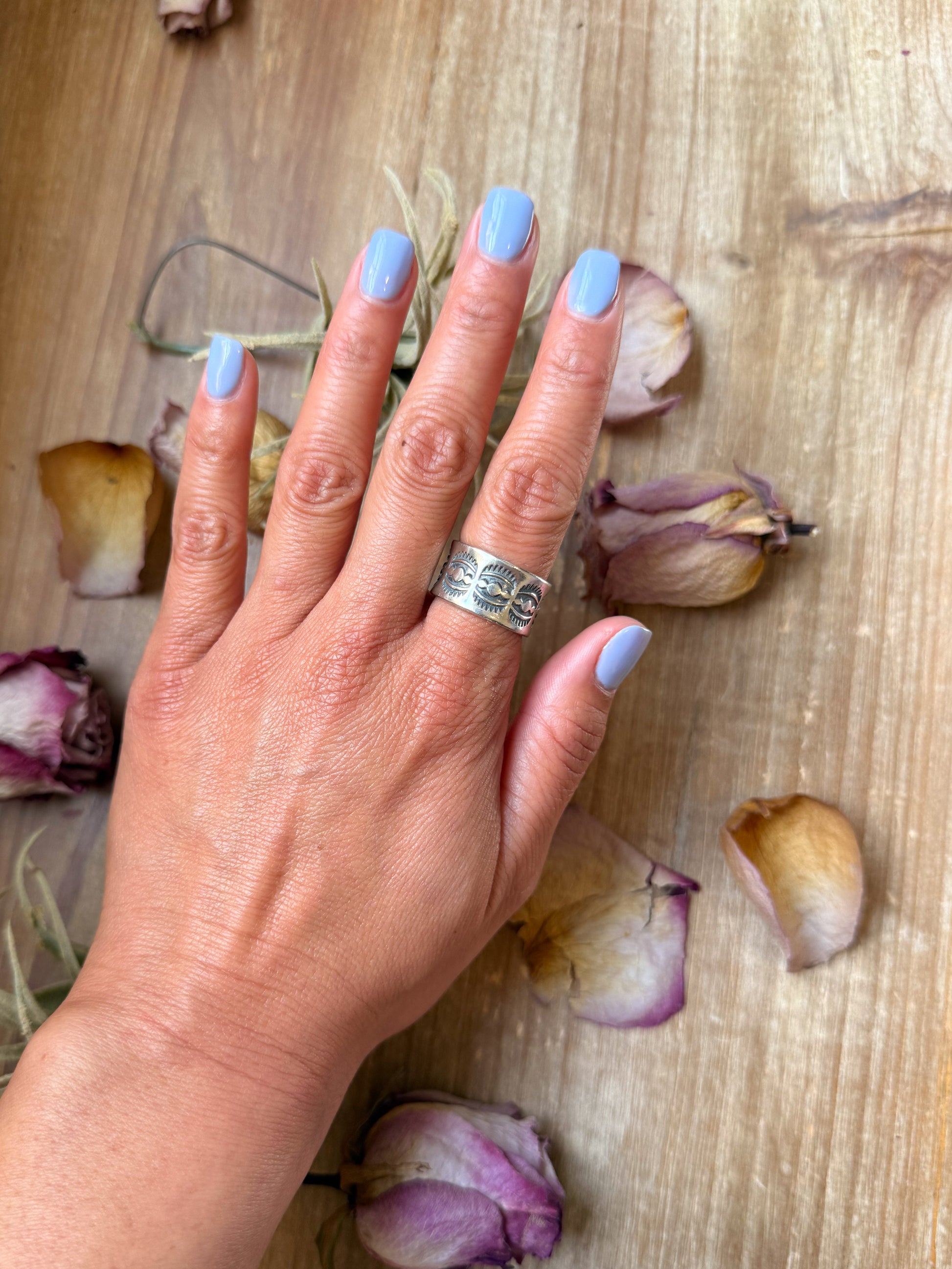 This Sterling Silver Hand-Milled Wide Band Ring is a bold, collectible piece handcrafted in the USA by artist Jason Ogg.