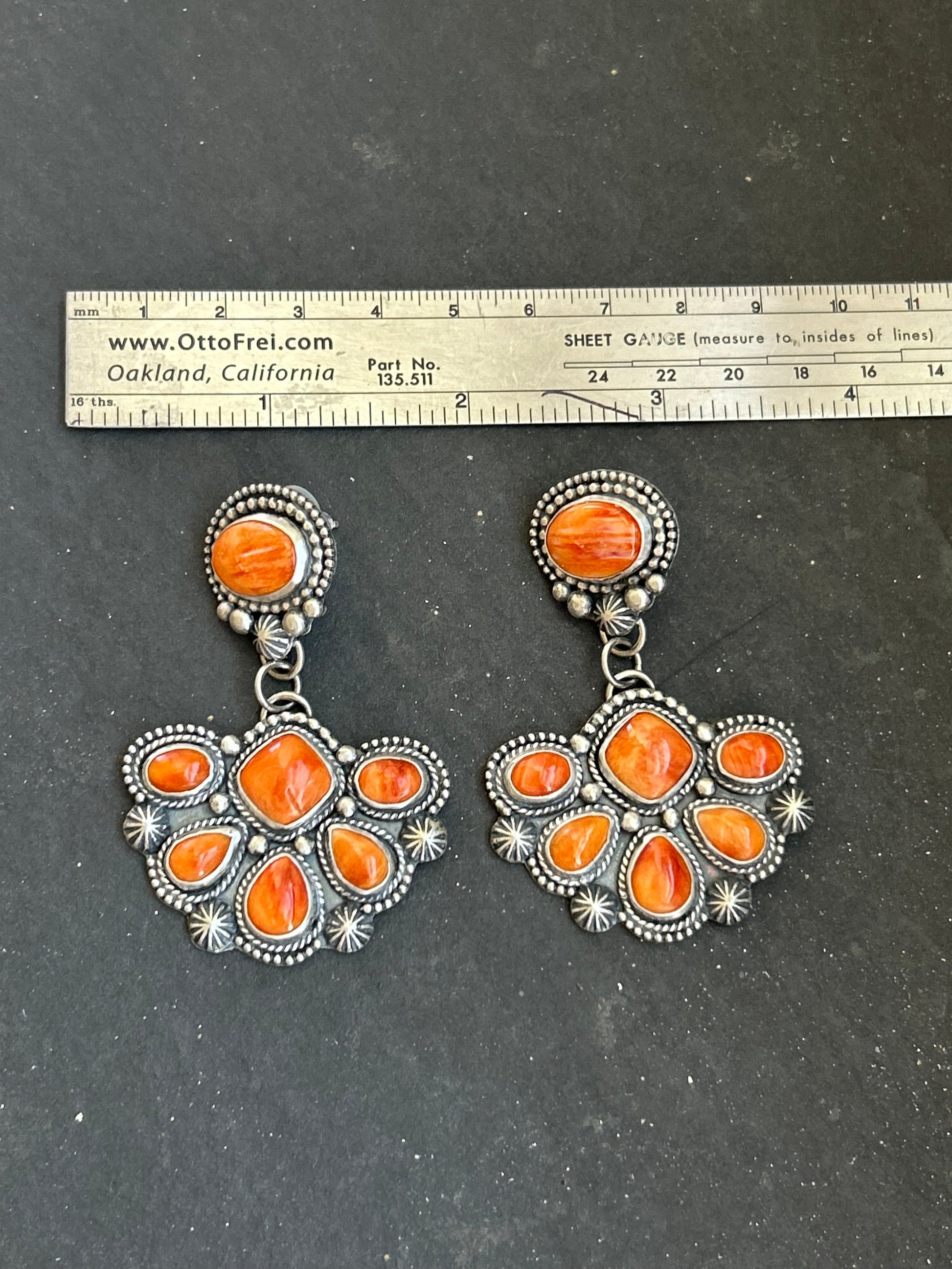 Sterling Silver Orange Spiny Oyster Half Cluster Dangle Earrings – Artist Shay Pfeiffer