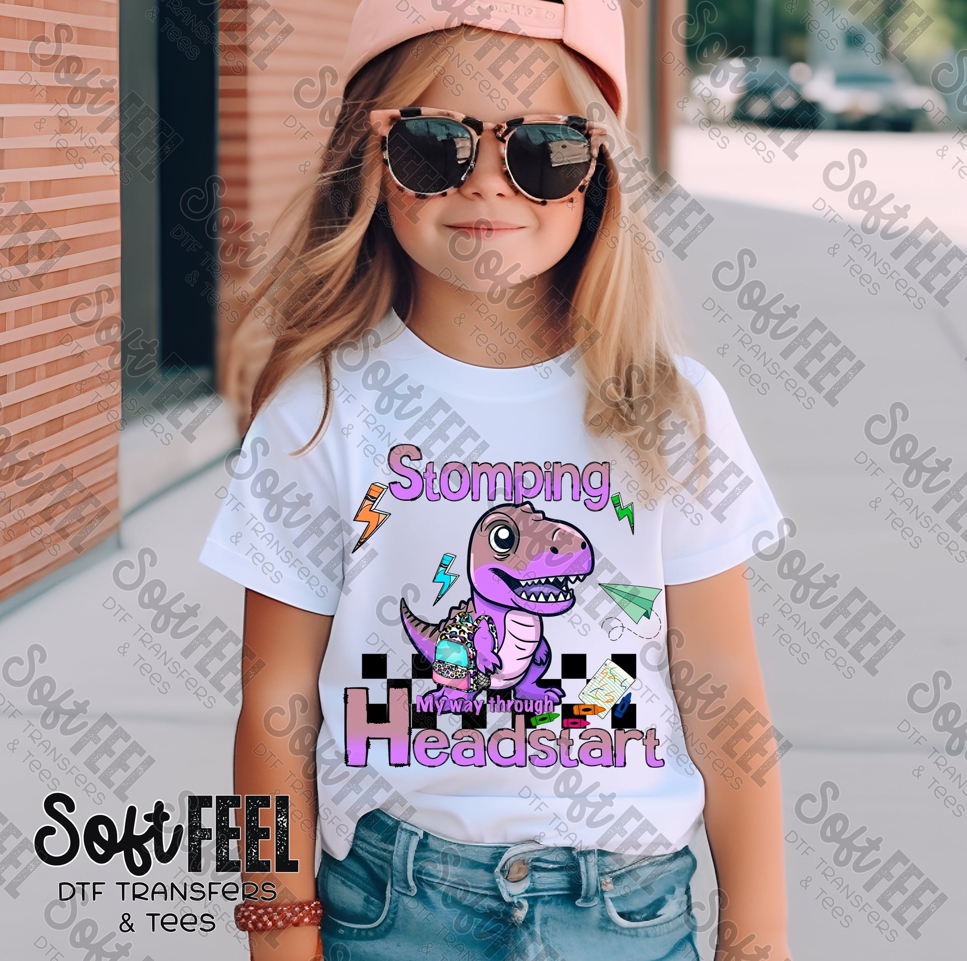 Stomping My Way Through Headstart Dino Pink - Back to School - Youth / School and Teacher- Direct To Film Transfer / DTF - Heat Press Clothing Transfer