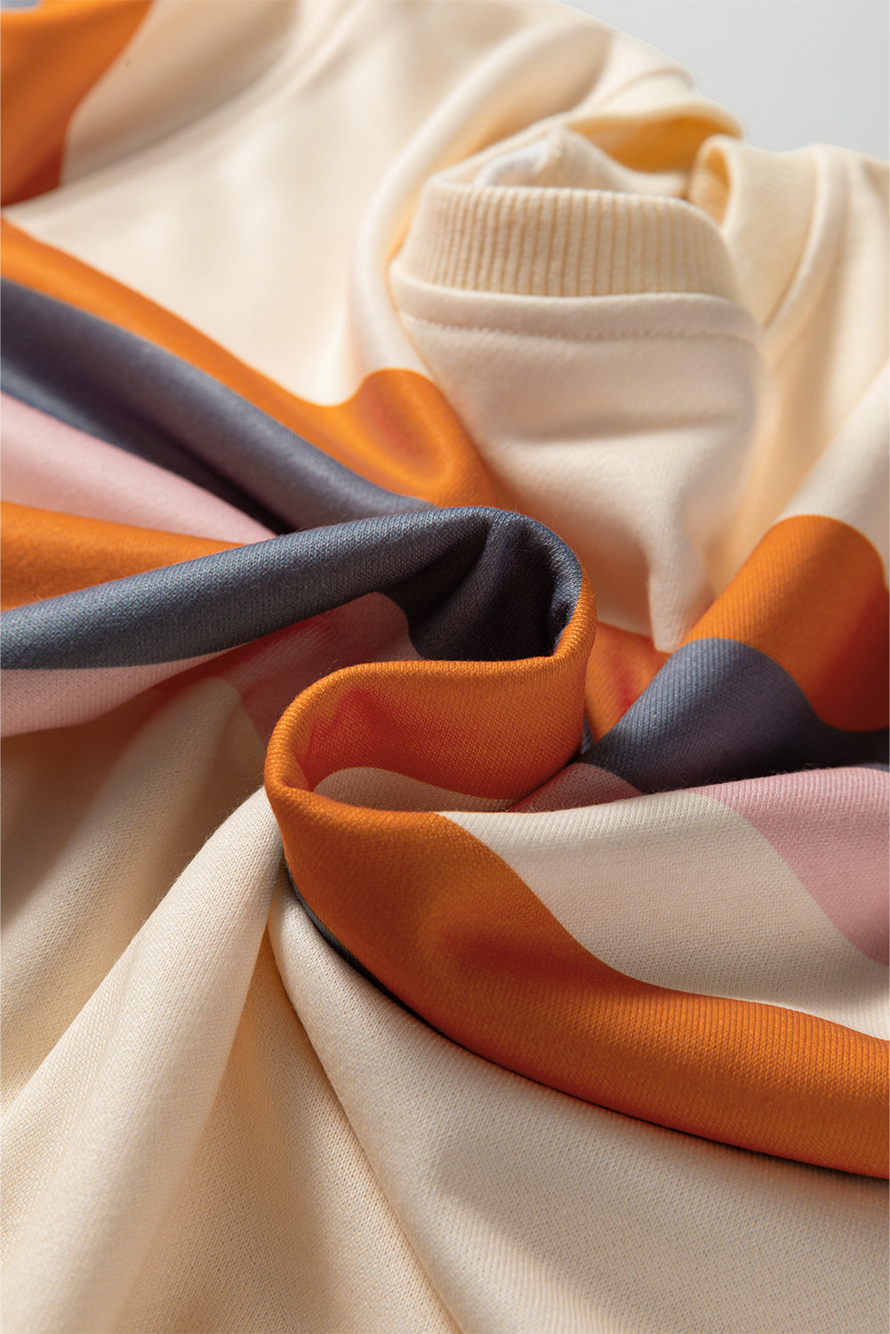 Rock this beige striped sweatshirt that brings casual cool to a whole new level. The eye-catching contrast stripes add visual interest while the puff sleeves deliver that chic, cozy vibe. Relaxed pullover fit means you can throw it on and go without overthinking it. Perfect for everything from coffee runs to weekend hangouts, this sweatshirt is your new go-to for effortless style. 100% Polyester