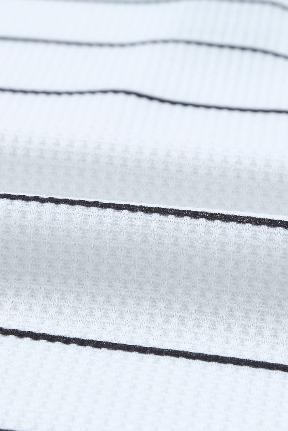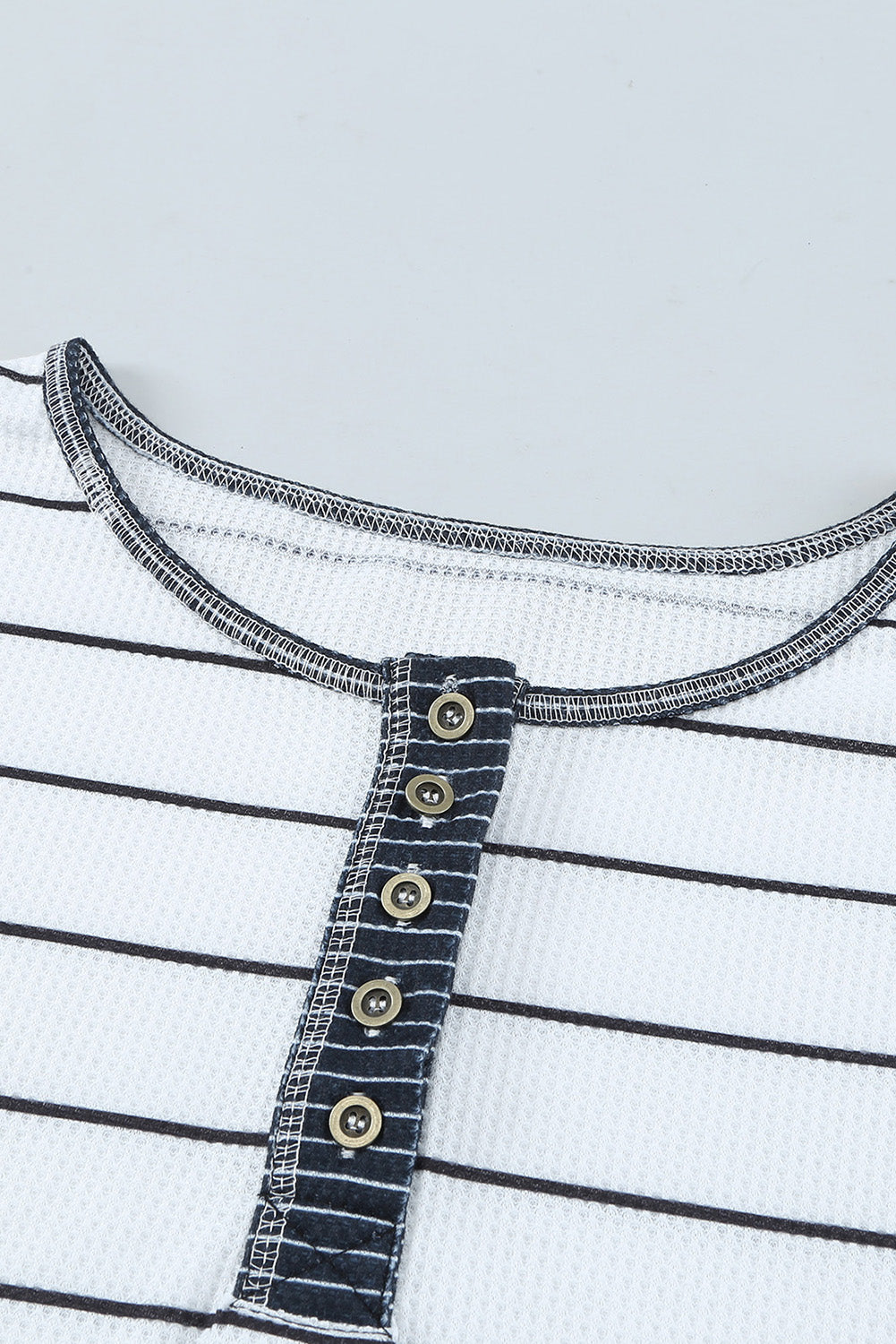 Bring a fun twist to your wardrobe with this top. The playful design adds casual charm, while delicate waffle knit details give it an extra touch of chic. Buttons make it a breeze to slip on or off, and long sleeves pair perfectly with jeans and sneakers for an effortlessly cool vibe. Ideal for everything from home hangouts to office days and weekend adventures! Polyester/Spandex