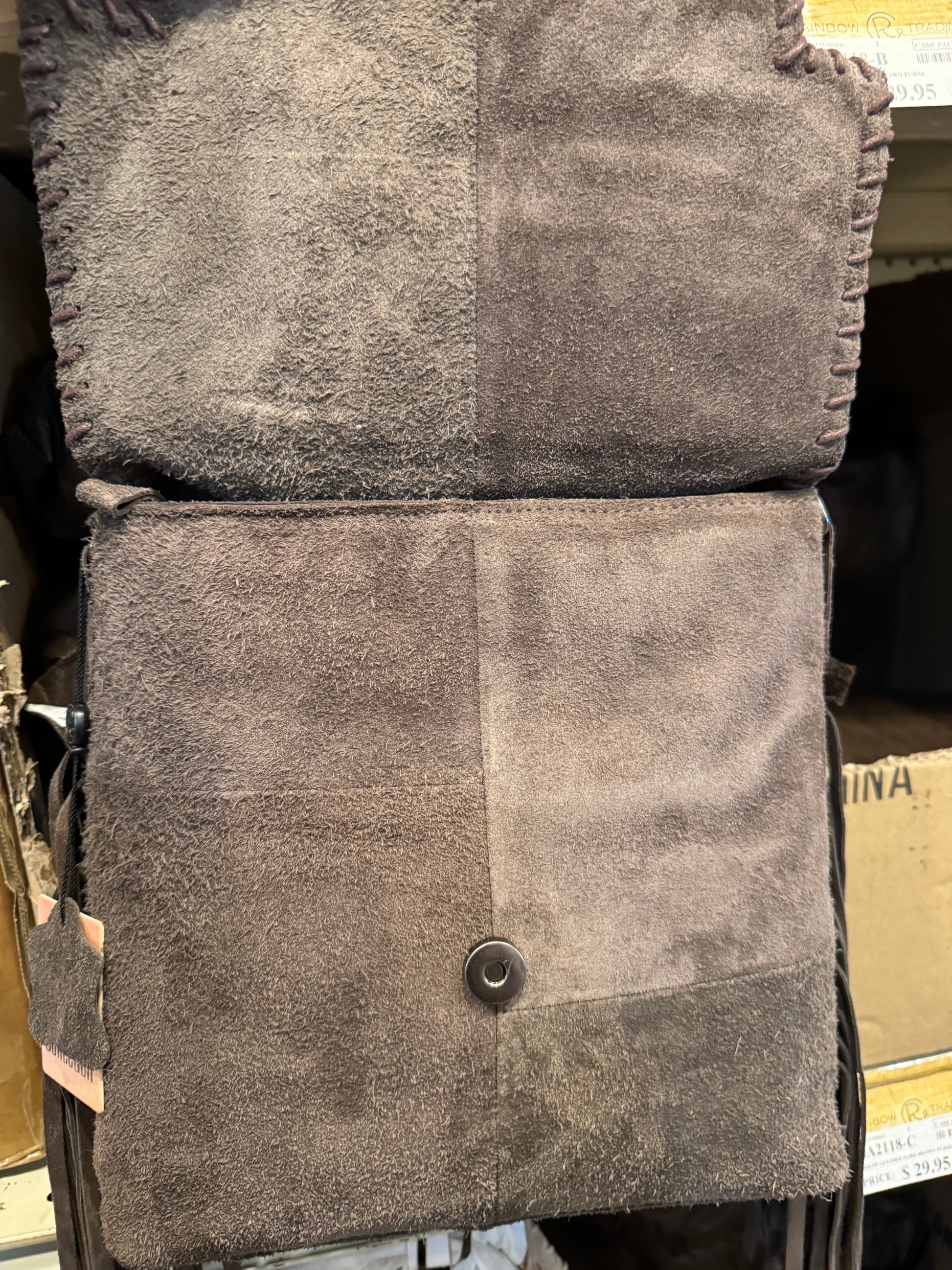 Expertly crafted from genuine suede leather, this crossbody purse features a unique arrow design and trendy fringe detailing. With an adjustable strap, it offers both style and practicality, making it the perfect accessory for any outfit. Upgrade your wardrobe with this high-quality, versatile purse.