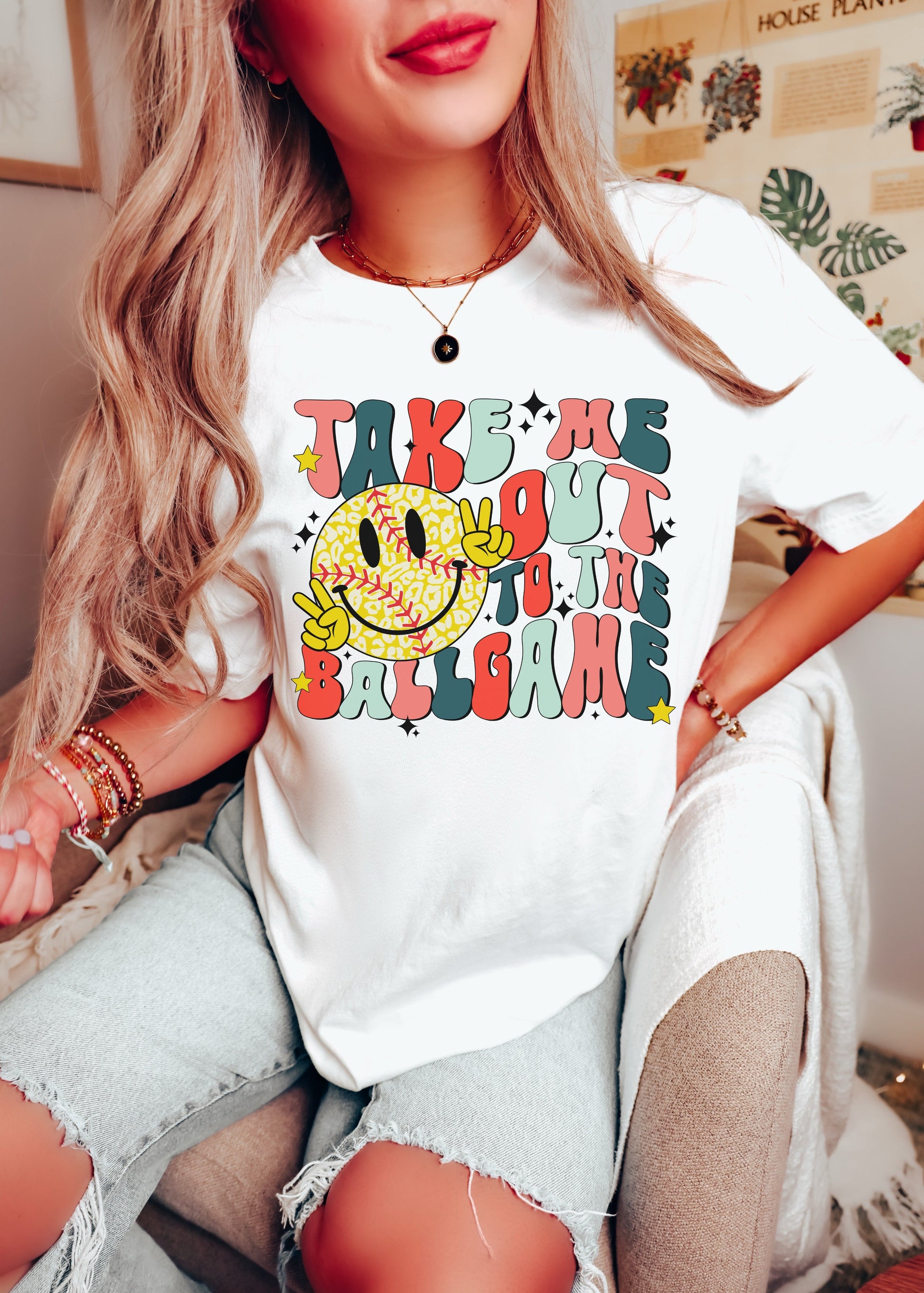 Take me out to the ball game Softball - Retro / Sports / Youth - Direct To Film Transfer / DTF - Heat Press Clothing Transfer