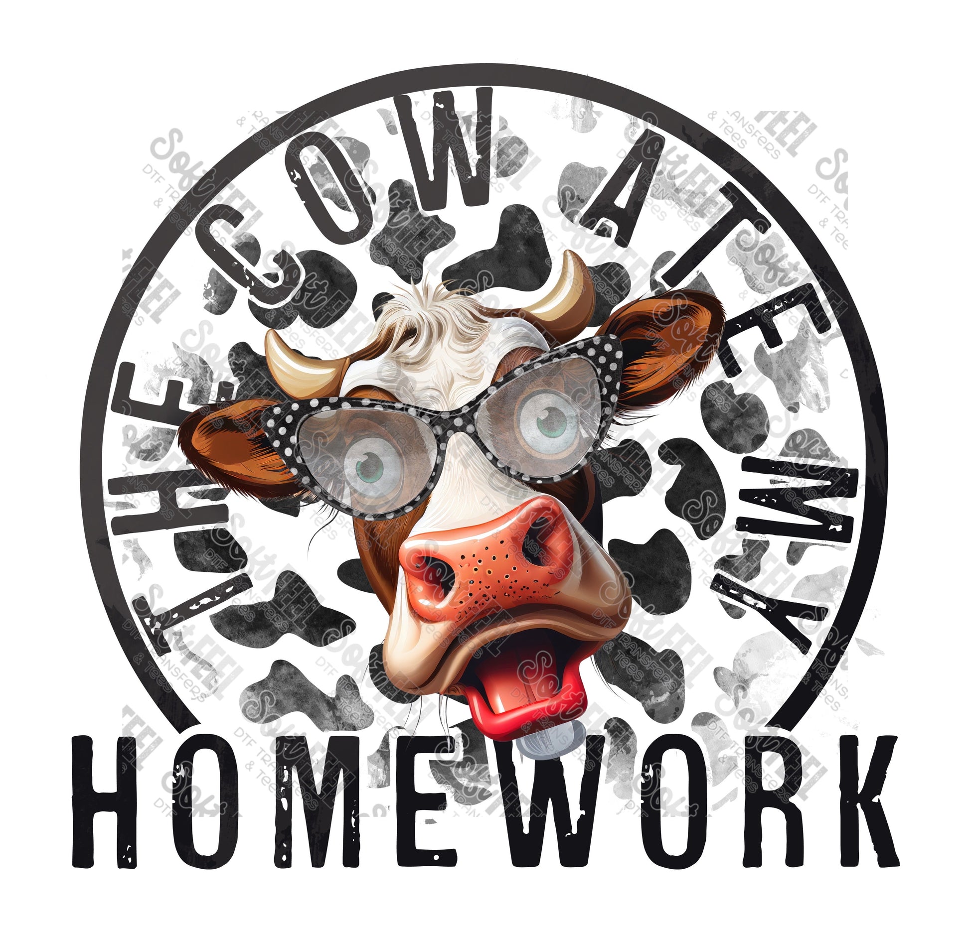 The Cow Ate My Homework - School and Teacher / Youth / Snarky / Humor / Country Western - Direct To Film Transfer / DTF - Heat Press Clothing Transfer