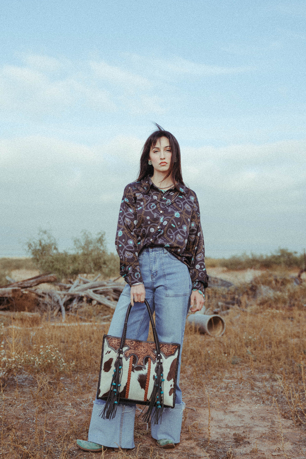 Introducing The Marvelle, a Haute Southern Hyde by Beth Marie Exclusive. I am so excited to release this bag. I did something BRAND new and added some “turquoise like” accents to the fringe. Y’all I think it perfectly accentuated the luxurious look in this bag. I hope you all love her too!