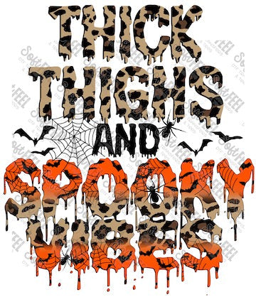 Thick Thighs and Spooky Vibes - Snarky Humor / Retro / Halloween Horror - Direct To Film Transfer / DTF - Heat Press Clothing Transfer