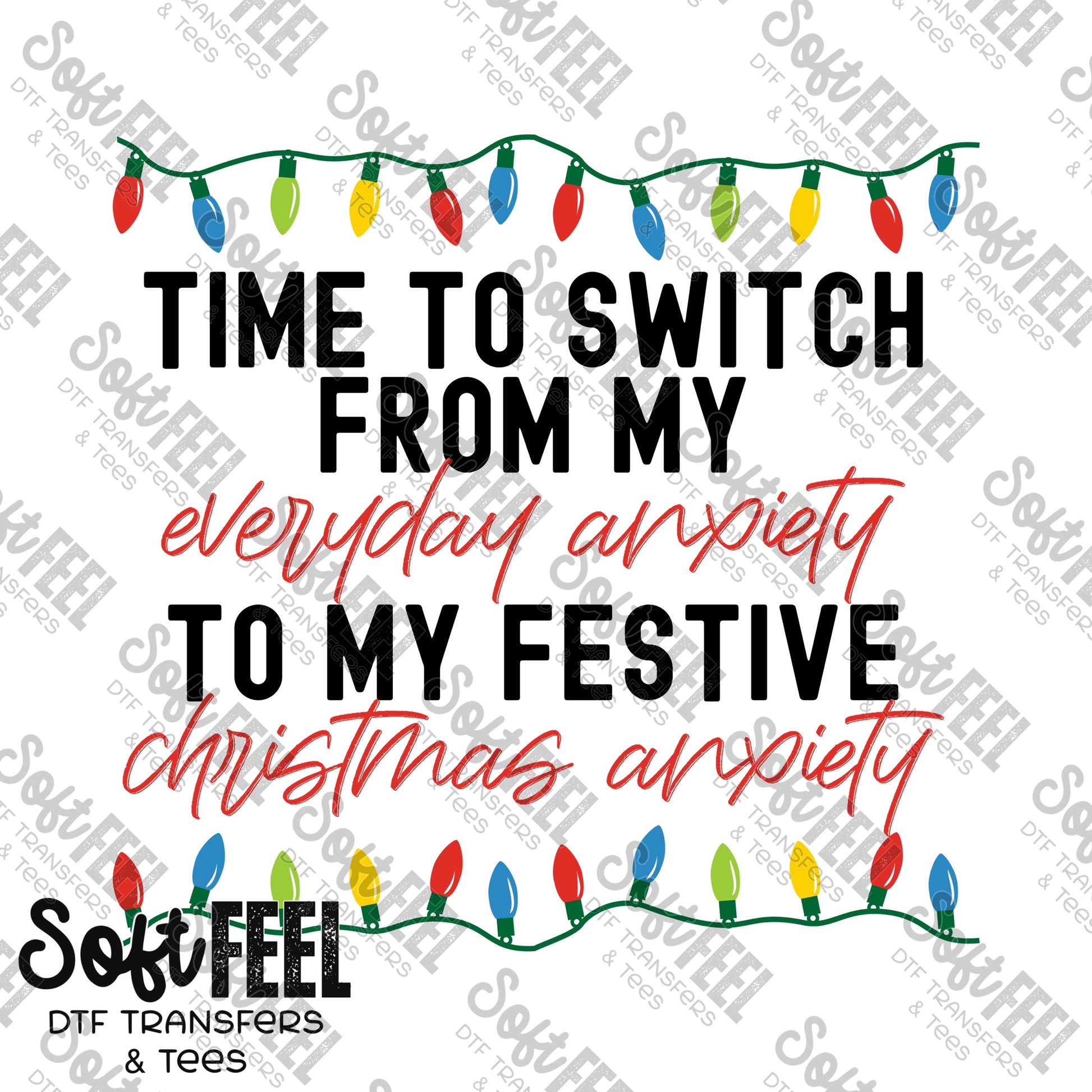 Time To Switch From My Everyday Anxiety - Christmas - Direct To Film Transfer / DTF - Heat Press Clothing Transfer