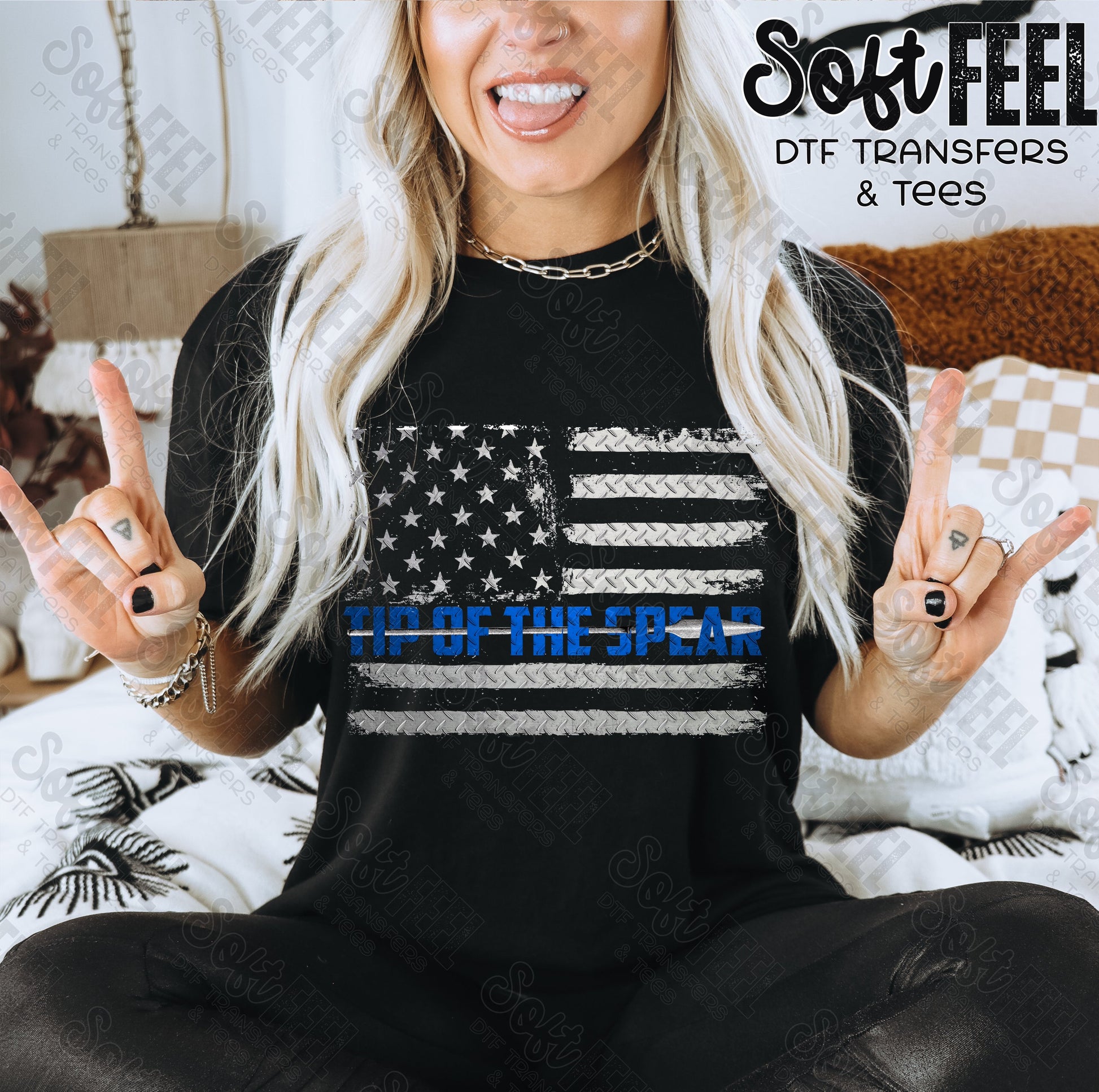 Tip of the Spear Blue Line Police - Public Service / Men's / Women's - Direct To Film Transfer / DTF - Heat Press Clothing Transfer