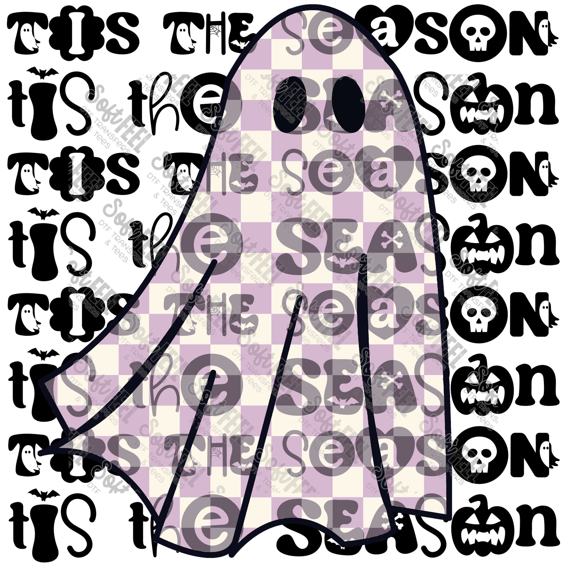 Tis The Season Checker Ghost Purple - Halloween - Direct To Film Transfer / DTF - Heat Press Clothing Transfer