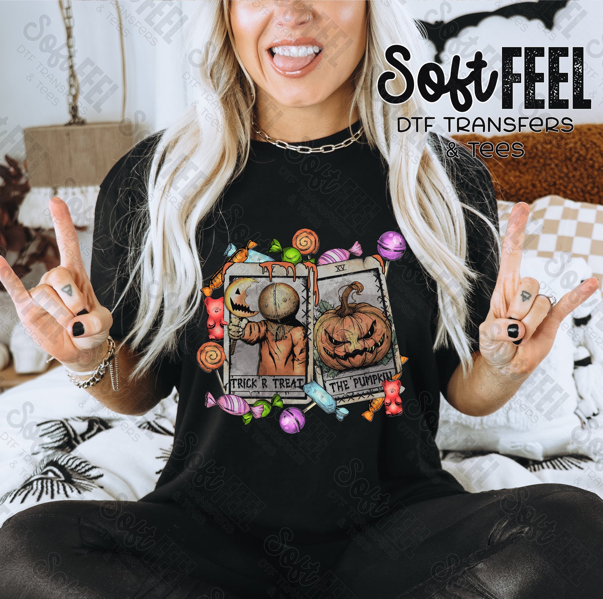 Trick or Treat Cards - Halloween Horror - Direct To Film Transfer / DTF - Heat Press Clothing Transfer