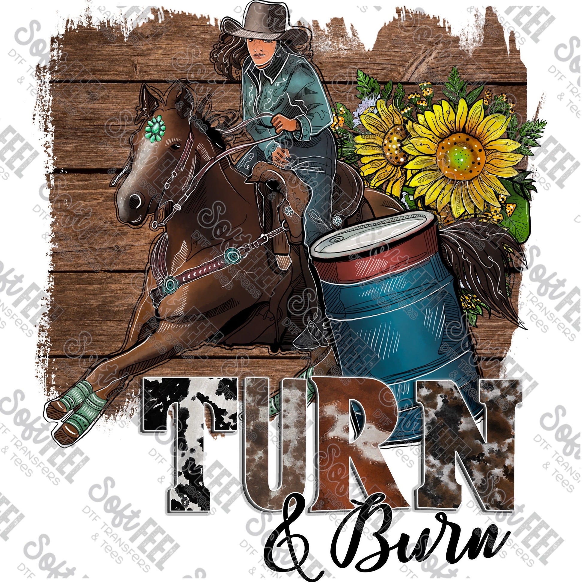 Turn and Burn - Women's / Western - Direct To Film Transfer / DTF - Heat Press Clothing Transfer