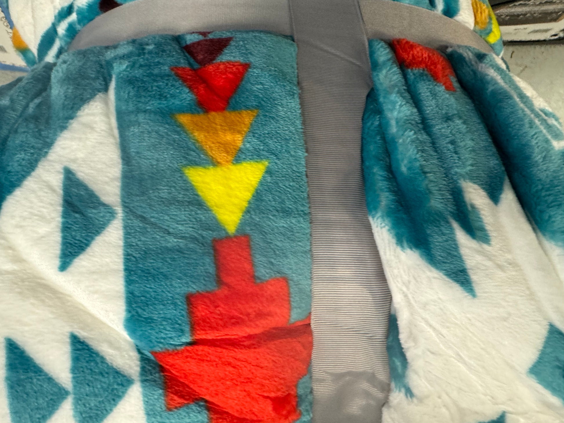 Introducing our Turquoise Aztec Cross Blue Super Plush Blanket! Made with super plush microfiber, this luxurious blanket measures 93x88" and weighs over 4 pounds. Stay cozy and warm with this ultra-soft blanket, perfect for snuggling up on chilly nights. Upgrade your bedding with this high-quality, comfortable addition.