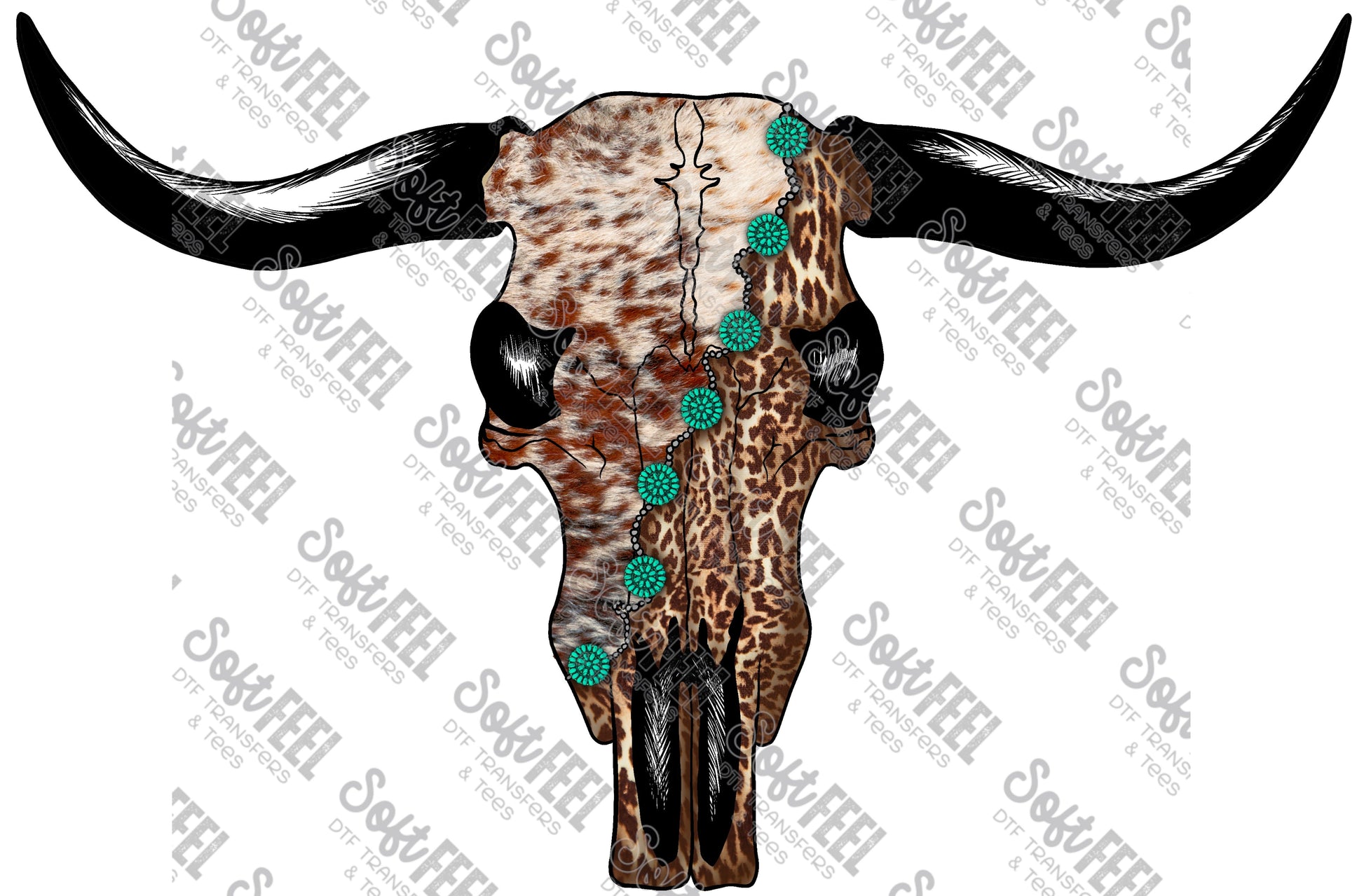 Turquoise Longhorn - Country Western - Direct To Film Transfer / DTF - Heat Press Clothing Transfer