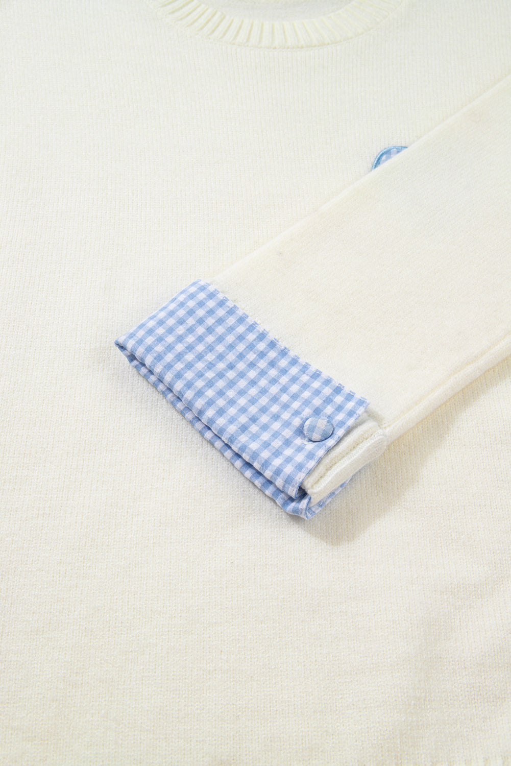 Embrace timeless charm with this white sweater featuring an adorable plaid heart embroidery that brings classic romance to life. The drop shoulder silhouette creates an effortlessly relaxed vibe perfect for laid-back days, while cuffed sleeves add a polished, put-together touch. A crew neckline keeps the look versatile and easy to style with everything in your closet, making this sweet piece your new go-to for casual elegance with a hint of heartfelt personality. Acrylic/Polyester/Poly