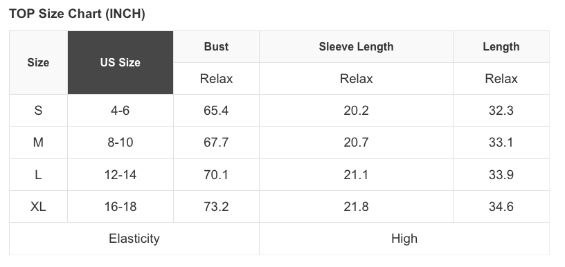 See size chart for approximate measurements