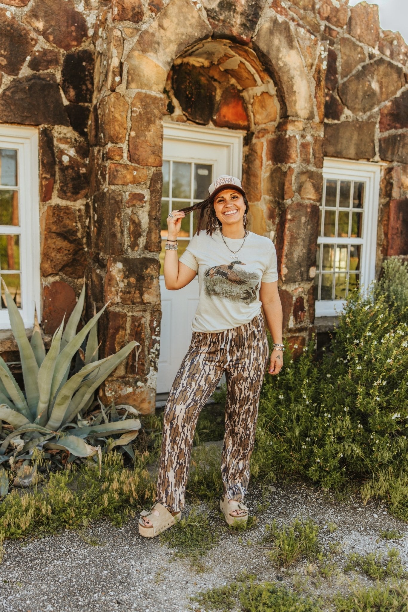 The Vintage Duck Graphic Tee brings all the nostalgic outdoorsy vibes with a side of southern charm. Featuring a retro-style Mallard Duck graphic and a worn-in, lived-in feel, this tee is perfect for early mornings in the blind, campfire hangs, or just looking like you know your way around a pair of waders. Classic, rugged, and right at home in the wild.