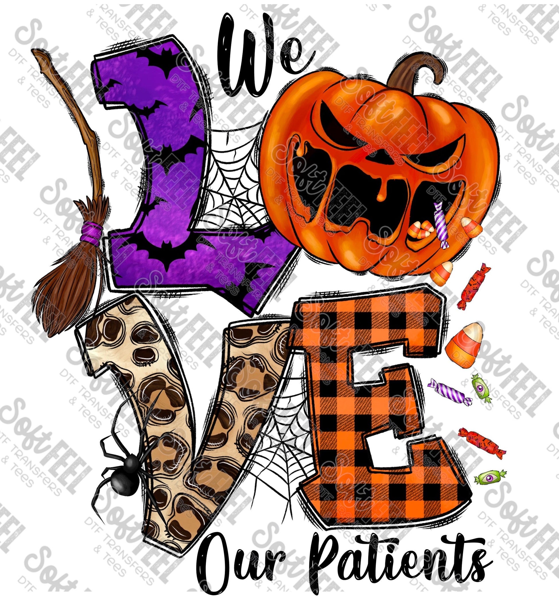 We Love Our Patients Pumpkin - Occupations / Nursing / Dental / Halloween Horror - Direct To Film Transfer / DTF - Heat Press Clothing Transfer
