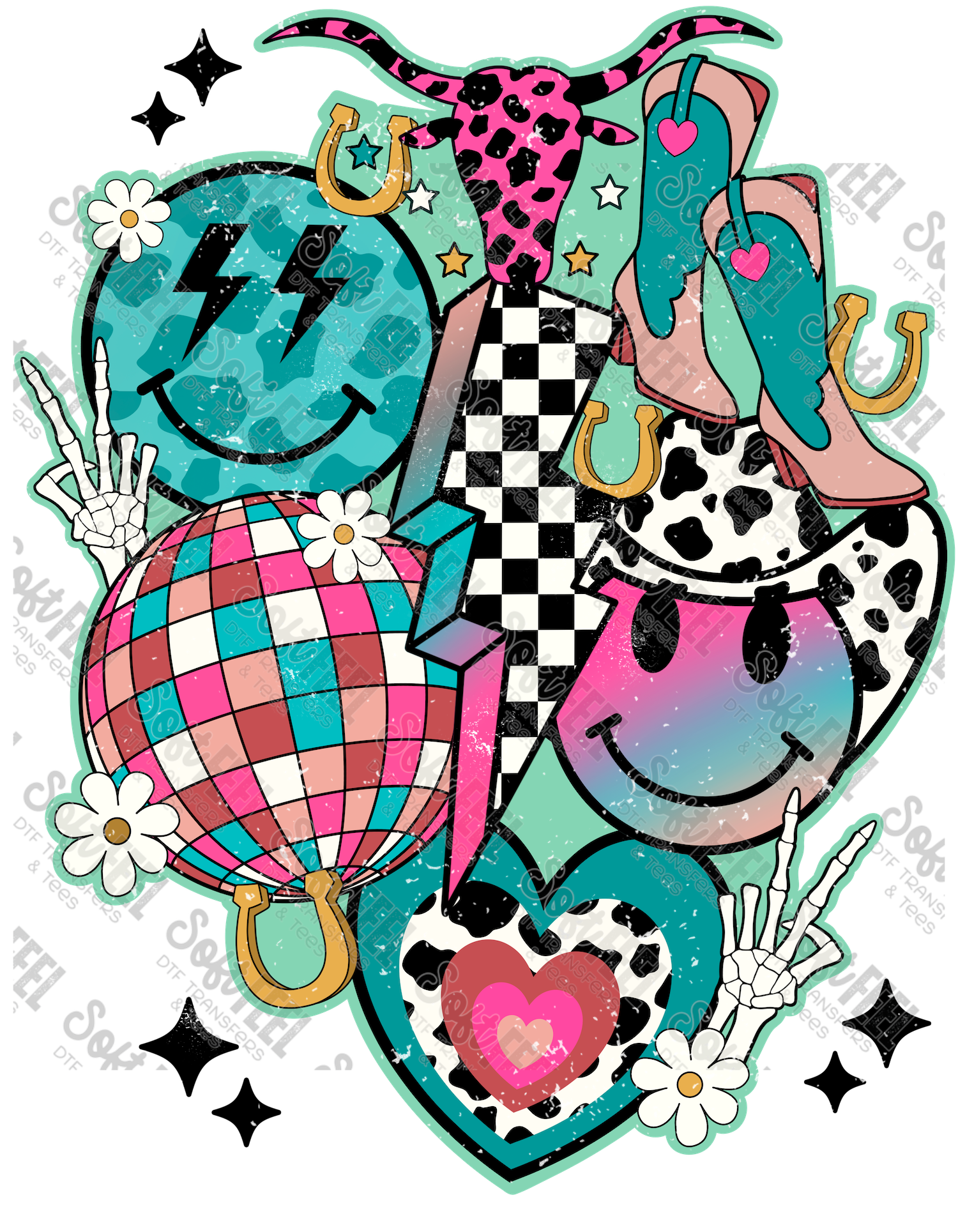 Western Collage - Youth / Retro / Western - Direct To Film Transfer / DTF - Heat Press Clothing Transfer