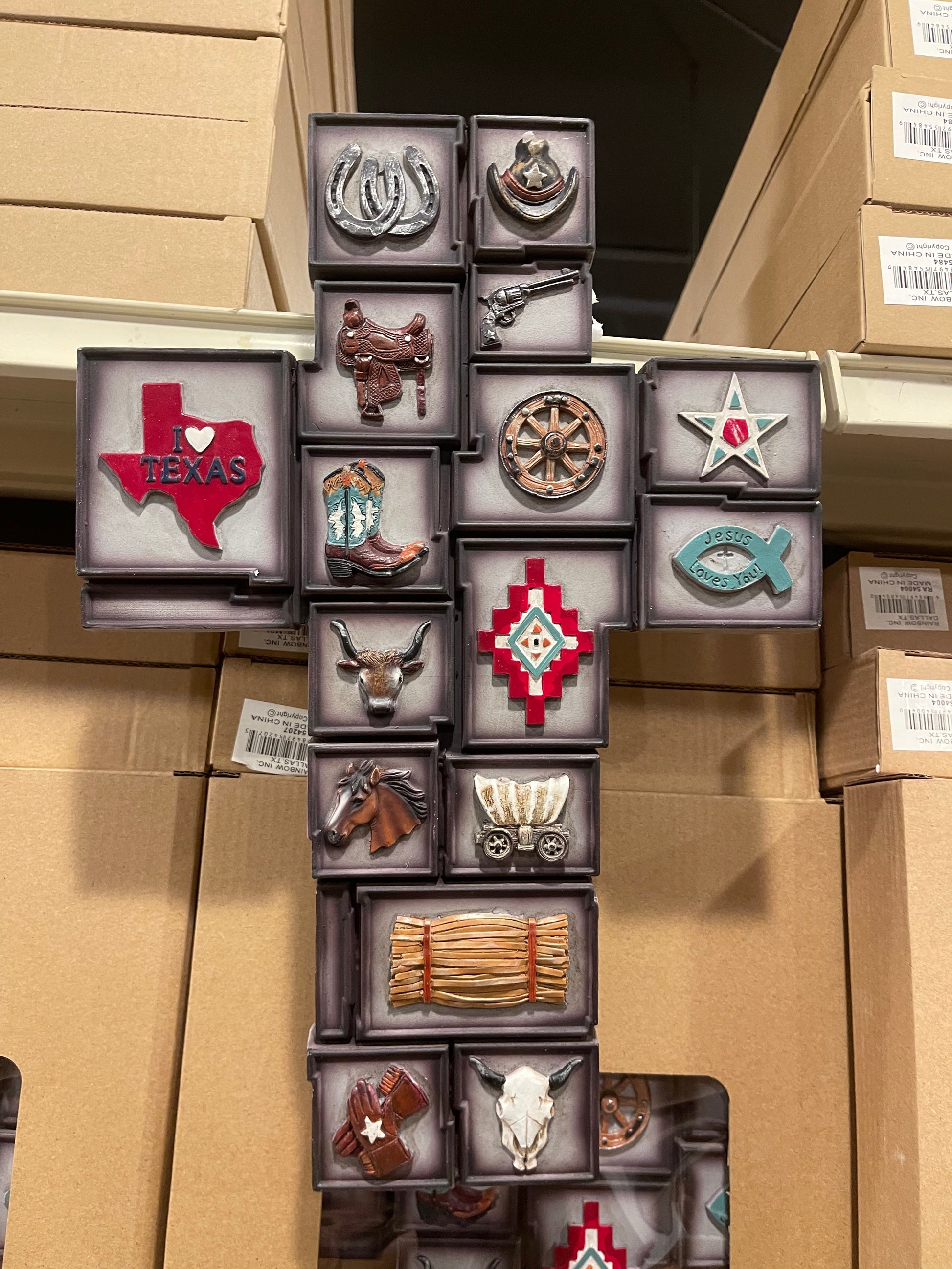 Expertly crafted with resin, this 14”x10” Western Marker Cross is a durable and stunning addition to any home decor. The claw tooth hanger installed on the back ensures easy and secure hanging. Enhance your space with this timeless and beautiful piece.