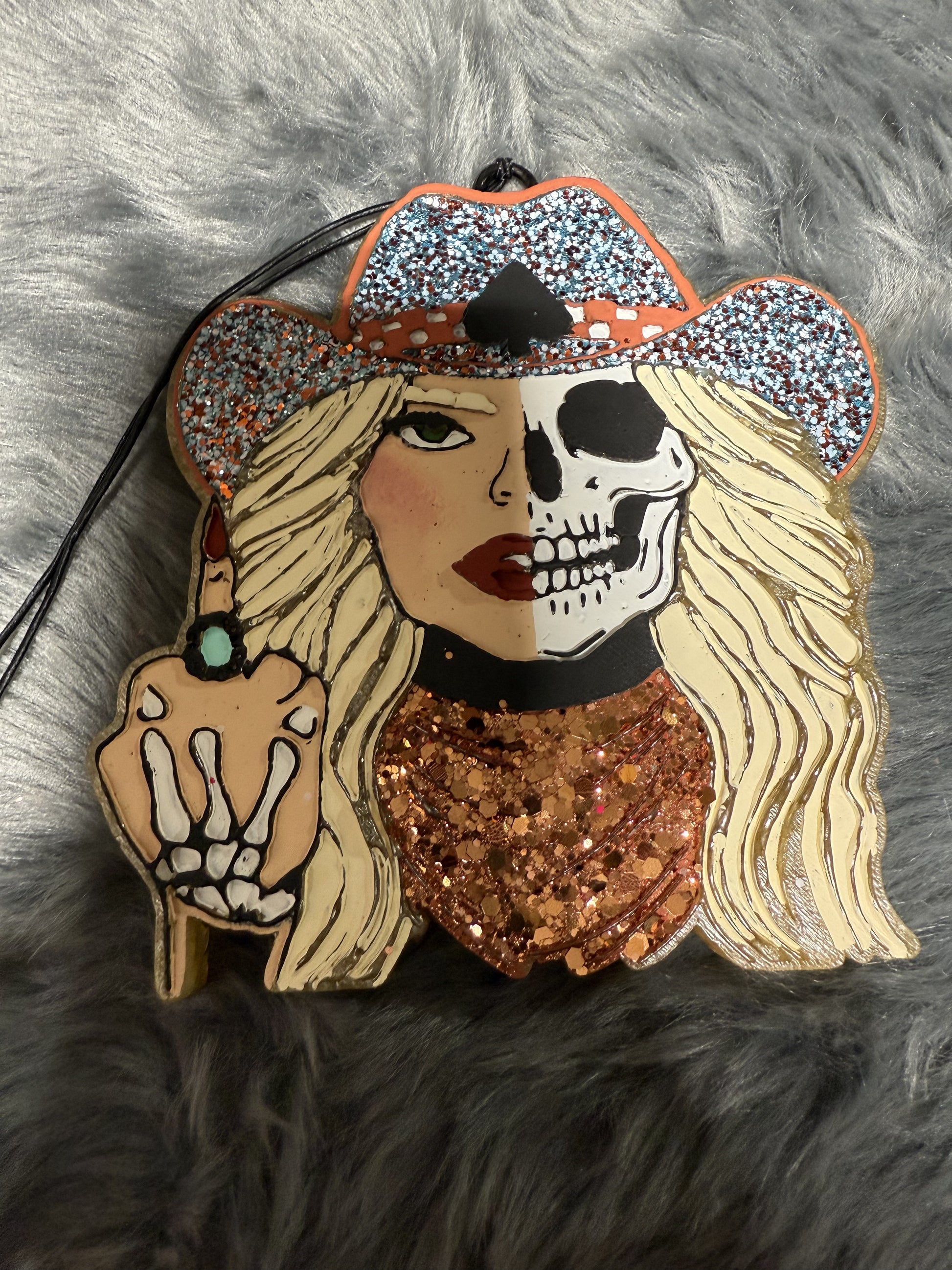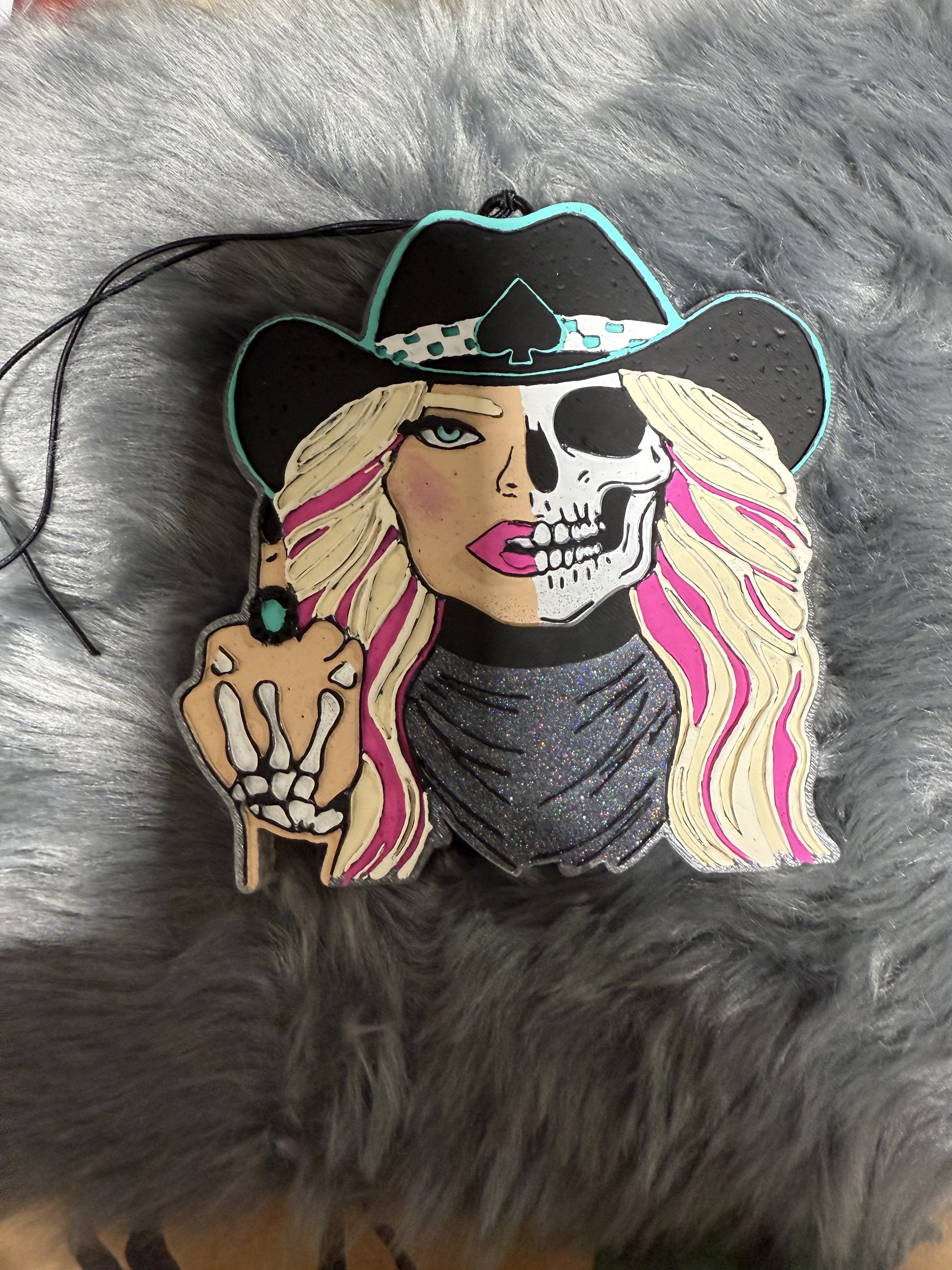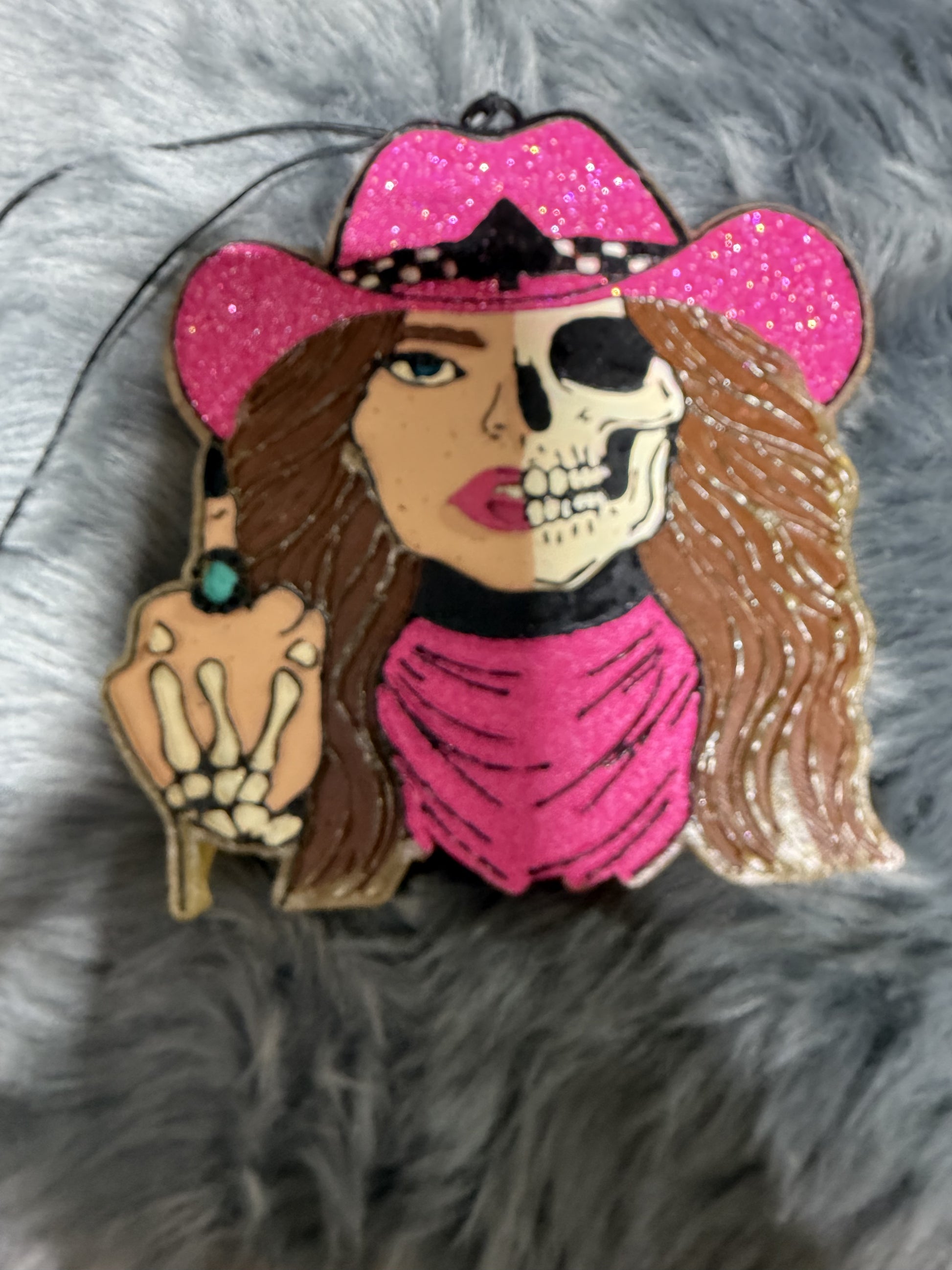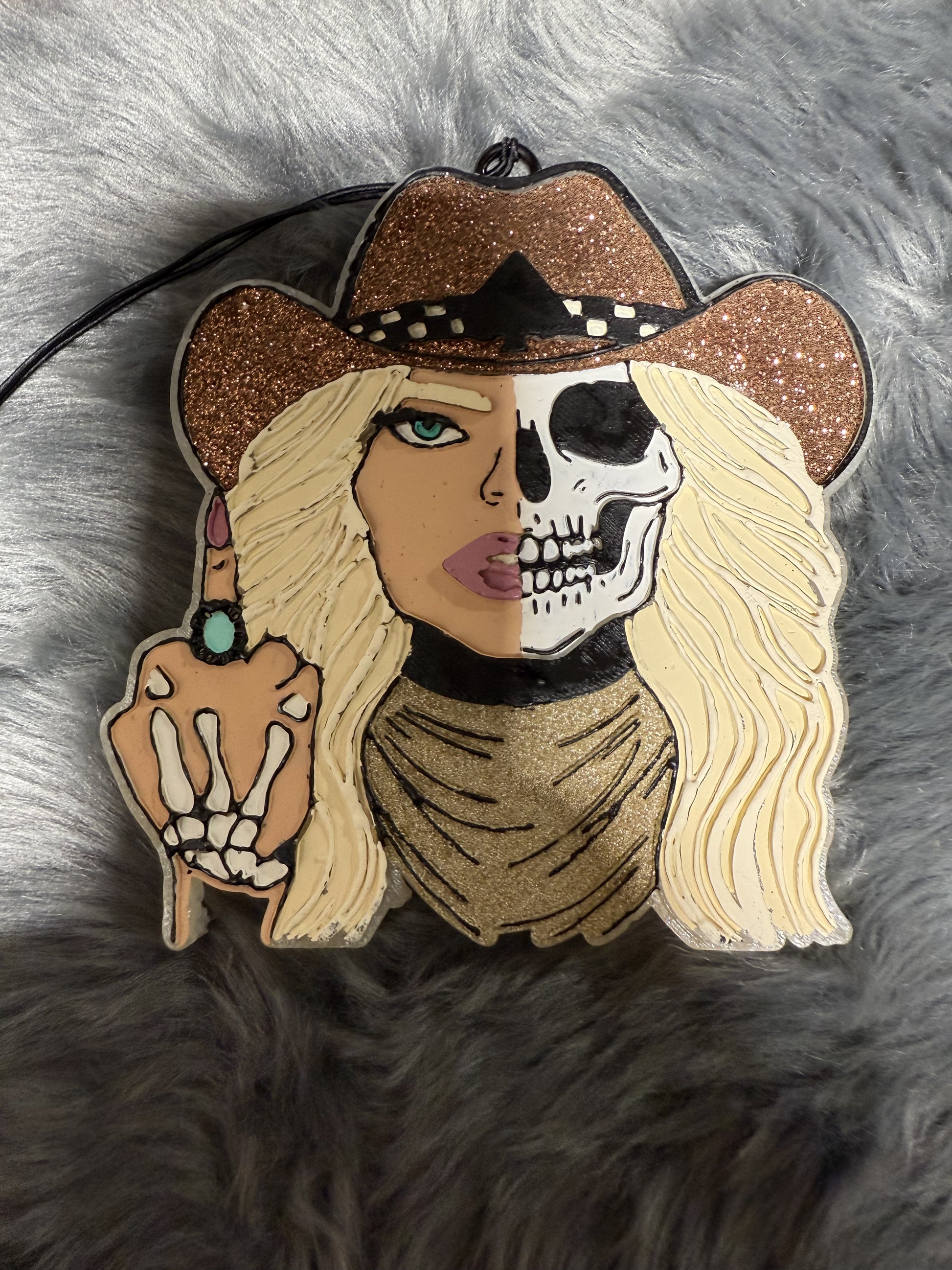 Western Skelly Cowgirl with Middle Finger and Turquoise