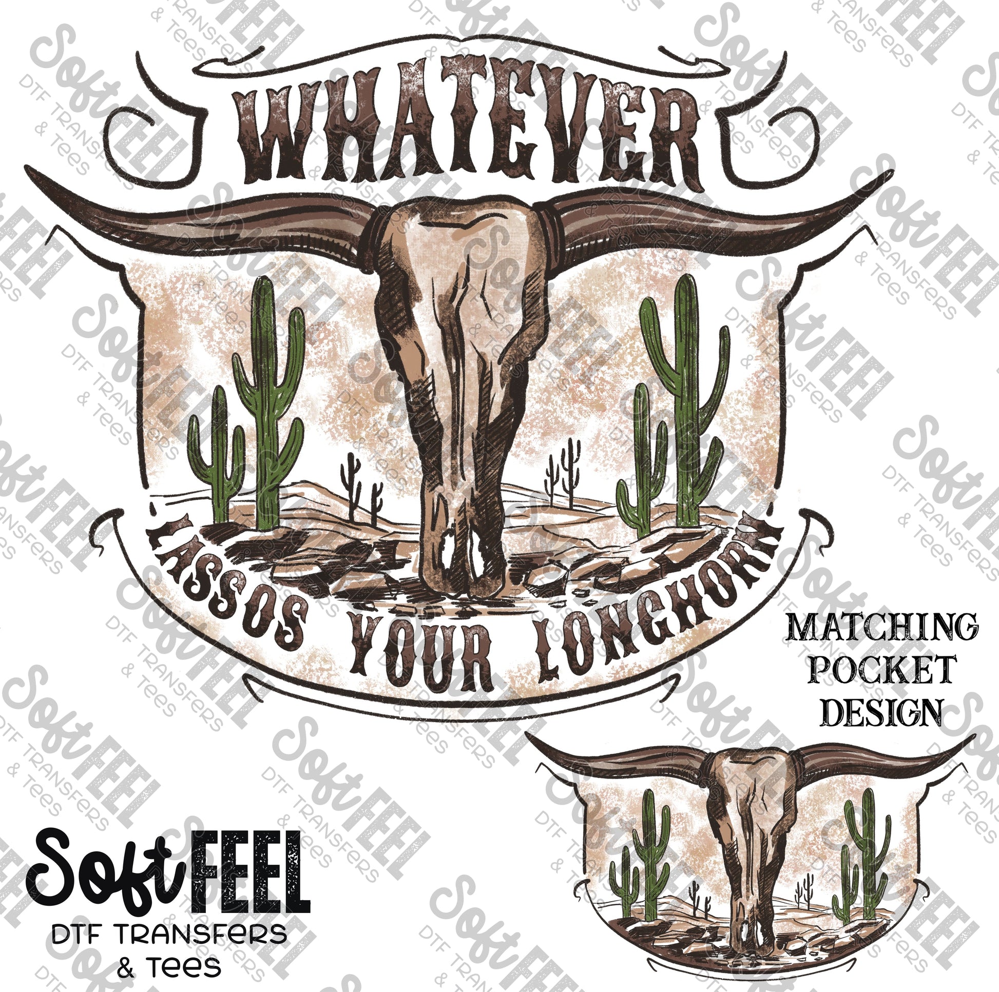 Whatever Lassos Your Longhorn - Vintage Country Western - Direct To Film Transfer / DTF - Heat Press Clothing Transfer