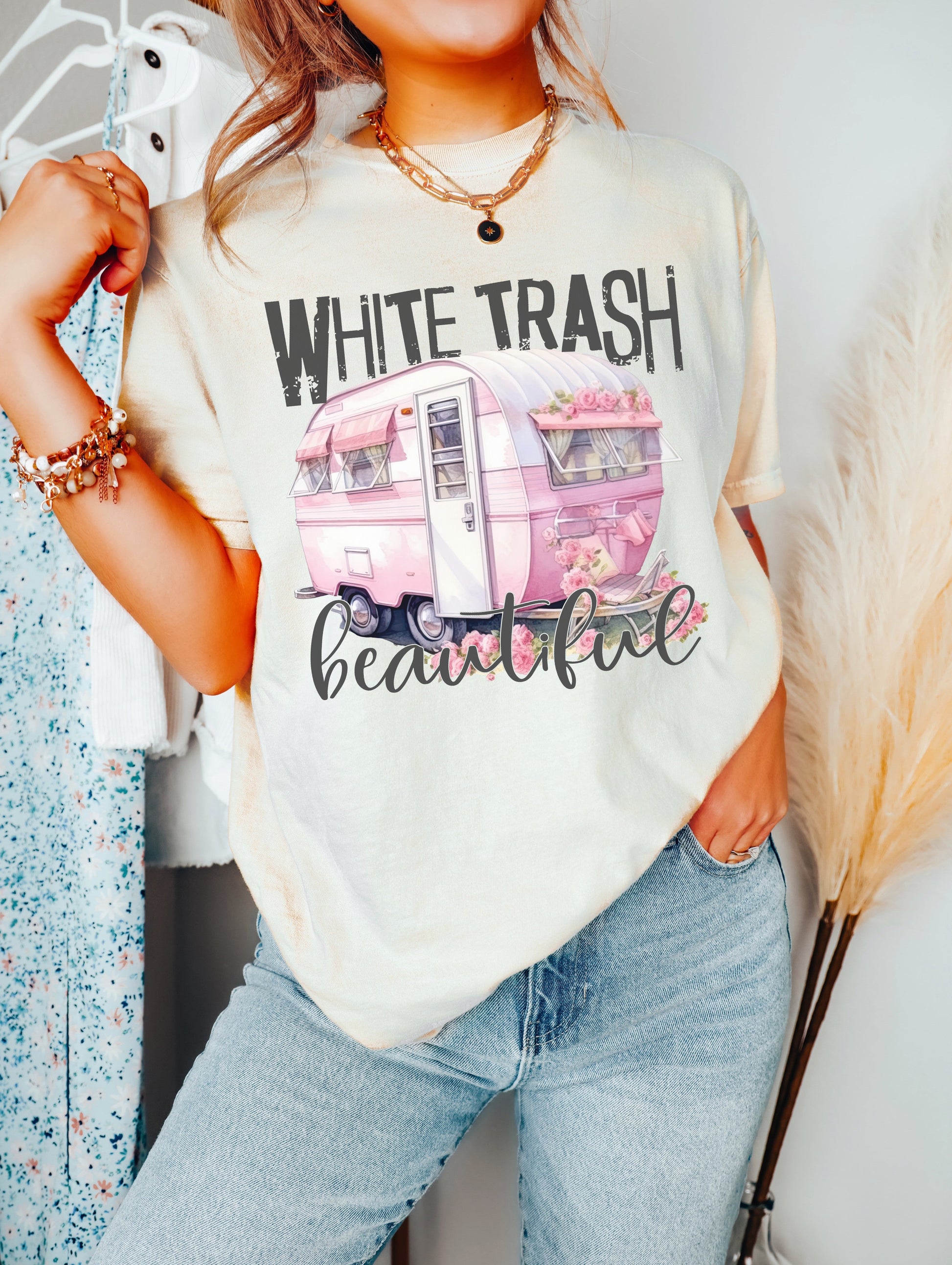 WHITE TRASH BEAUTIFUL - Women's - Direct To Film Transfer / DTF - Heat Press Clothing Transfer