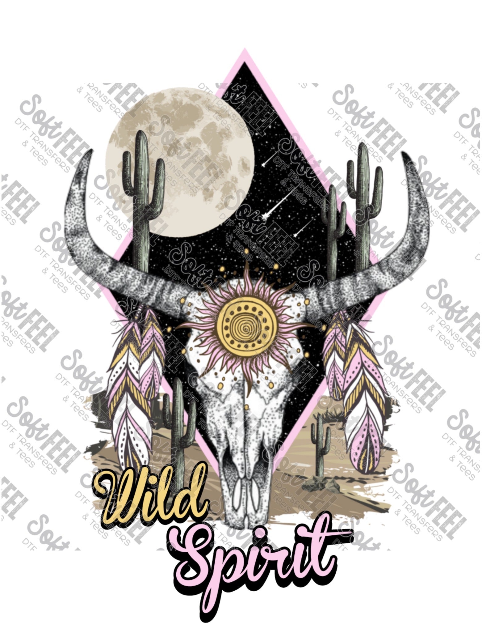Wild Spirit Aztec Skull Pink - Country Western / Gypsy - Direct To Film Transfer / DTF - Heat Press Clothing Transfer