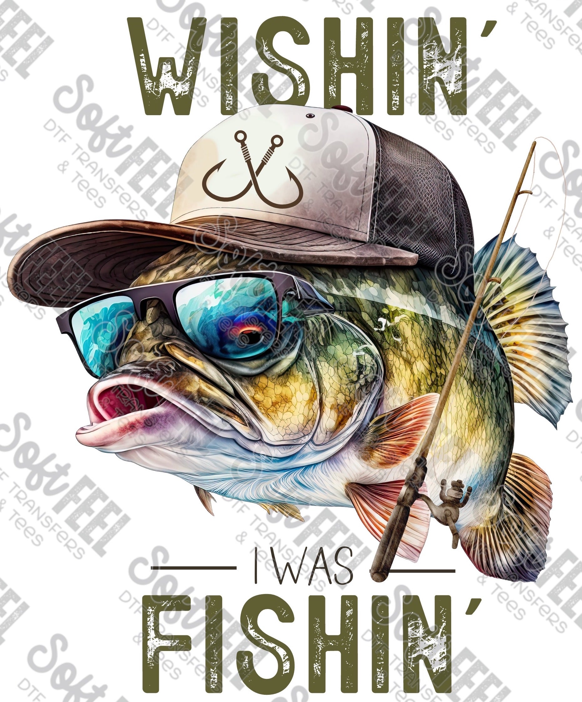 Wishin' I Was Fishin' - Men's / Fishing - Direct To Film Transfer / DTF - Heat Press Clothing Transfer