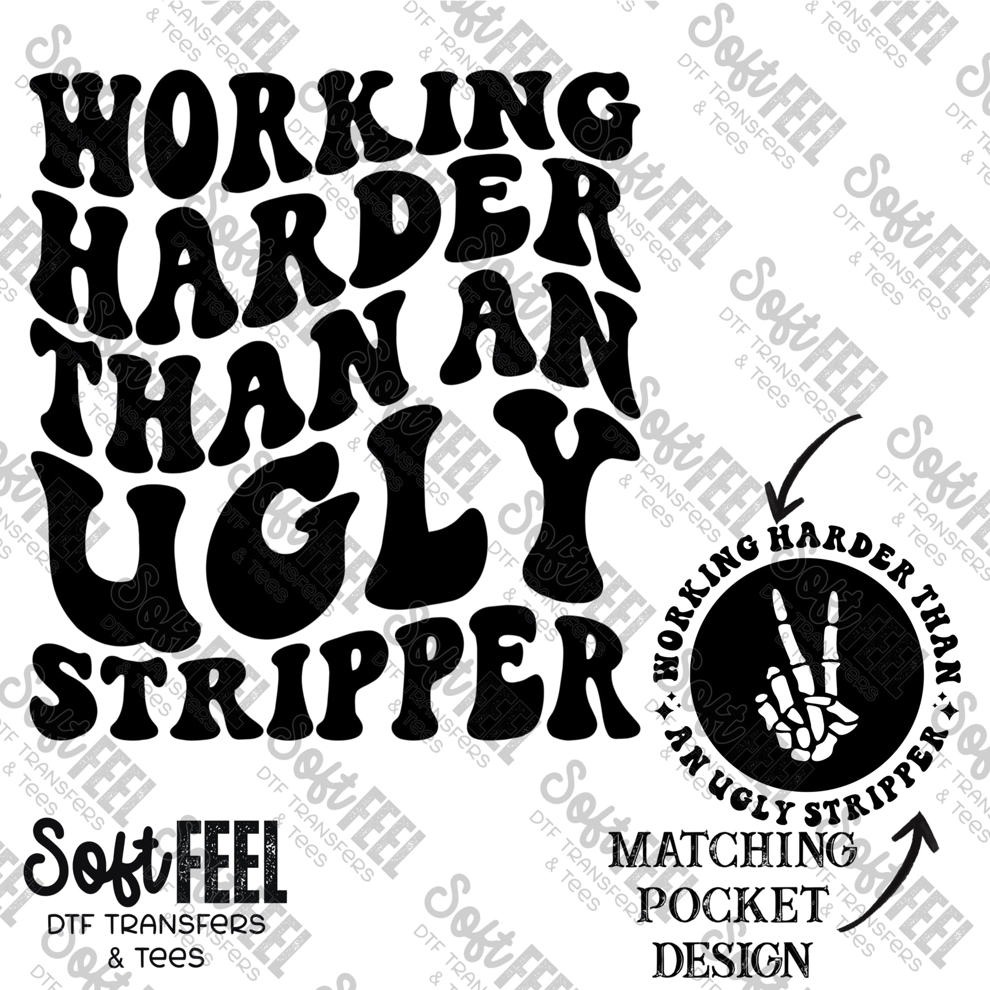Working Harder Than An Ugly Stripper - Adult Humor - Direct To Film Transfer / DTF - Heat Press Clothing Transfer