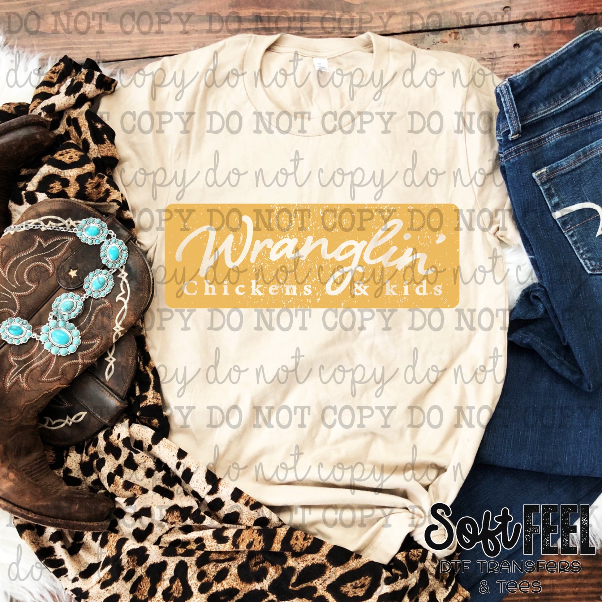 Wranglin Chickens and Kids - country western - Direct To Film Transfer / DTF - Heat Press Clothing Transfer