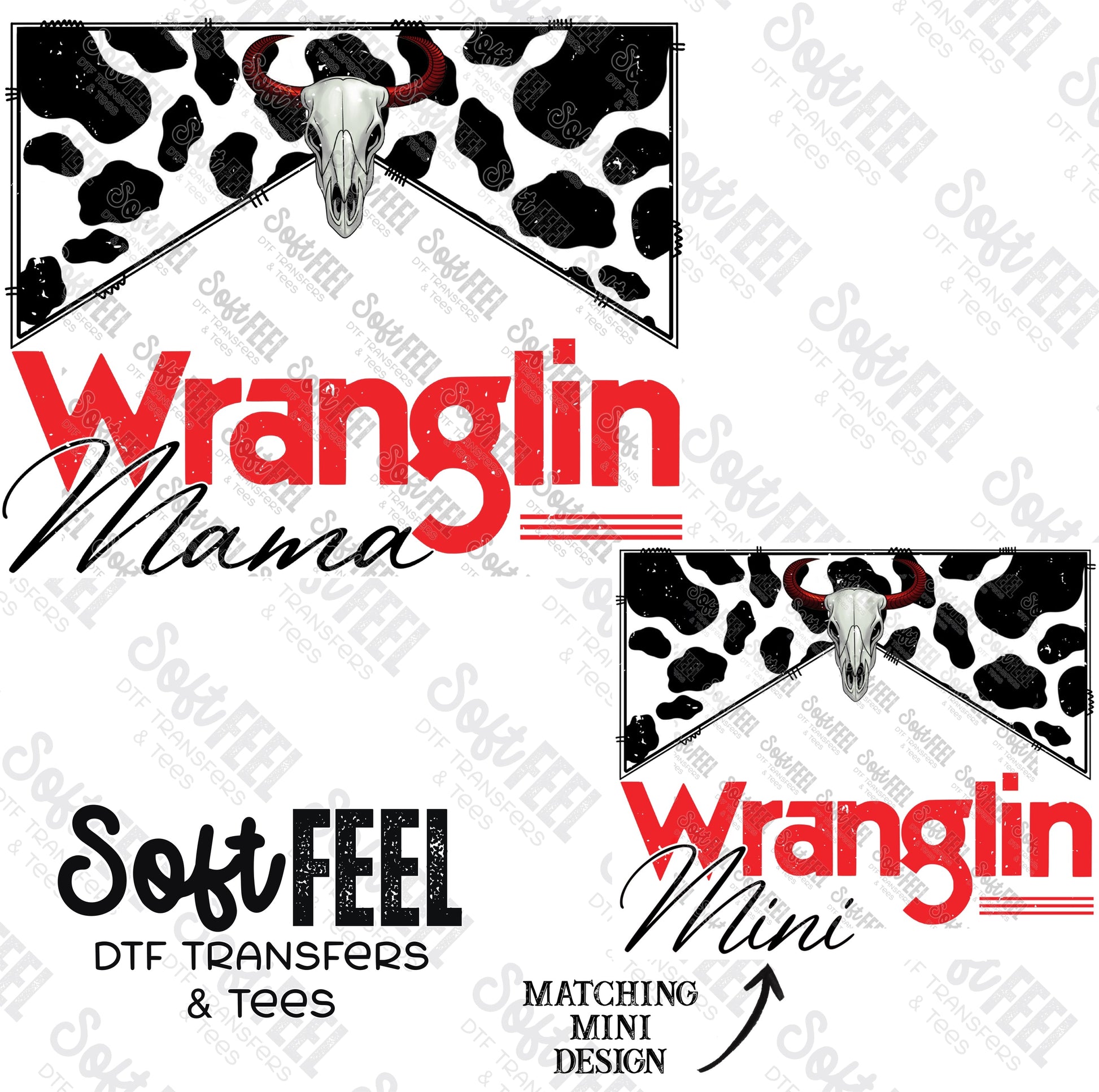 Wranglin Mama Mini Set - Mama Mini Set / Youth / Women's / Country Western - Direct To Film Transfer / DTF - Heat Press Clothing Transfer